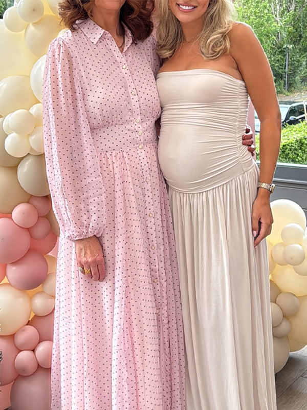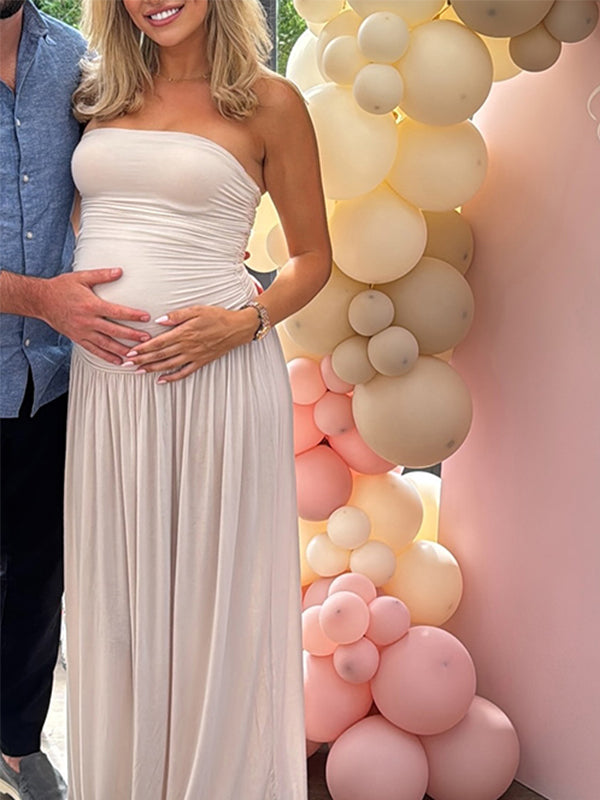 Apricot Bandeau Ruched Flowy Baby Shower Maternity Maxi Dress