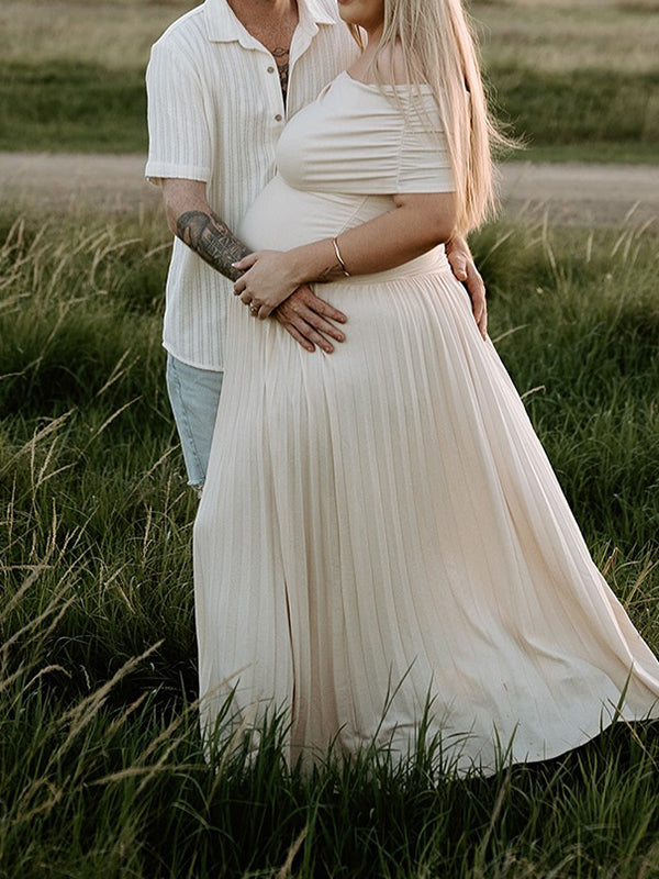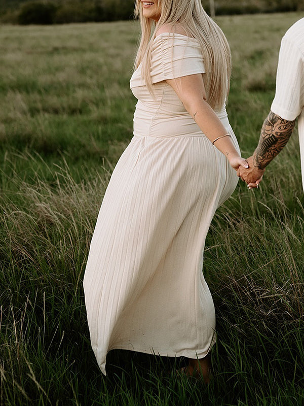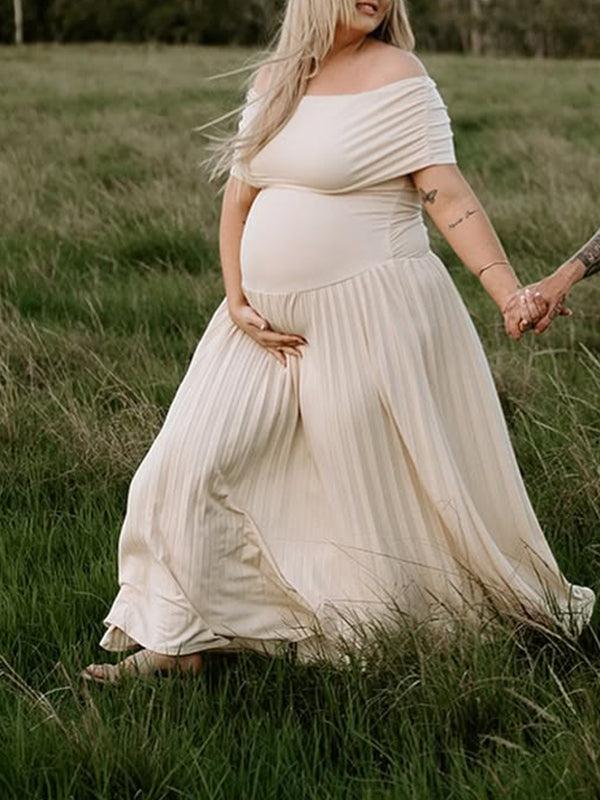 Apricot Ruched Pleated Maternity Photoshoot Plus Size Maxi Dress