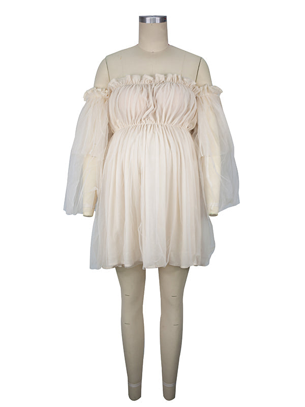 Apricot Off Shoulder Tulle Plus Size Maternity Mini Dress