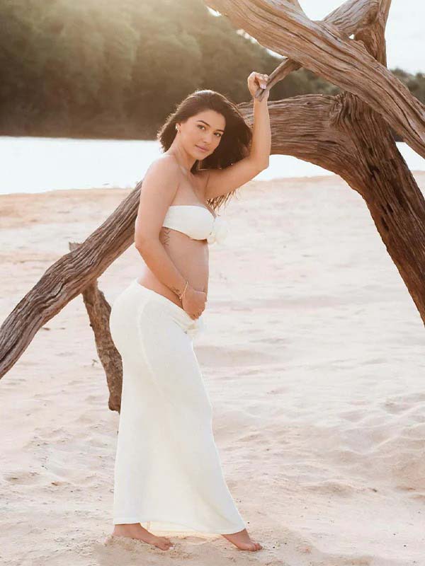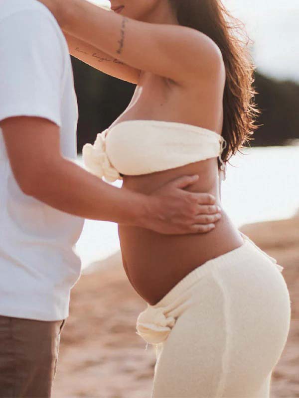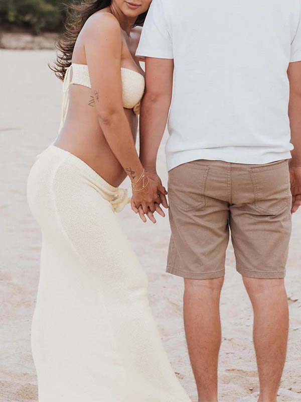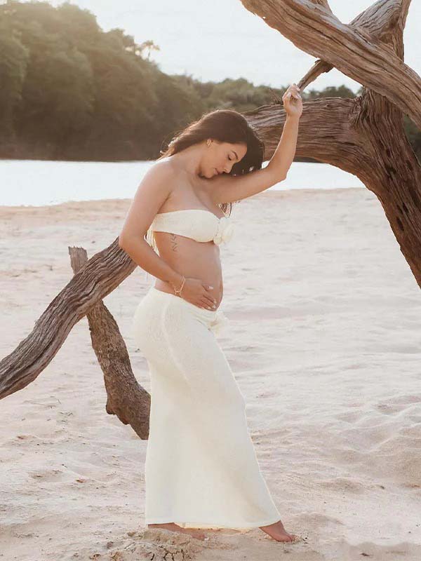 Beige 2-in-1 3D Flowers Knit Backless Photoshoot Maternity Maxi Dress