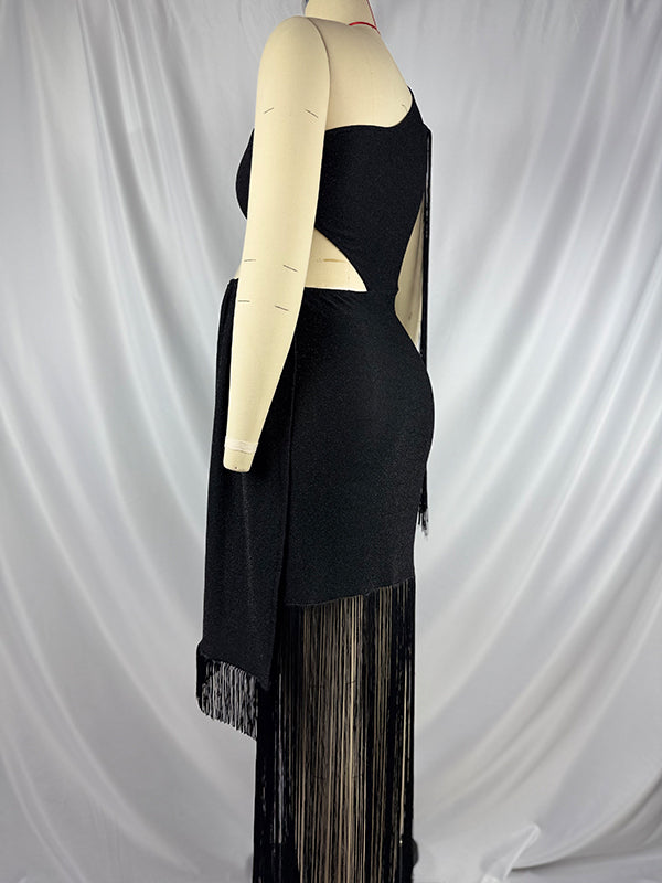 Decoration: Tassel, fringe, cut out, bodycon, asymmetric shoulder