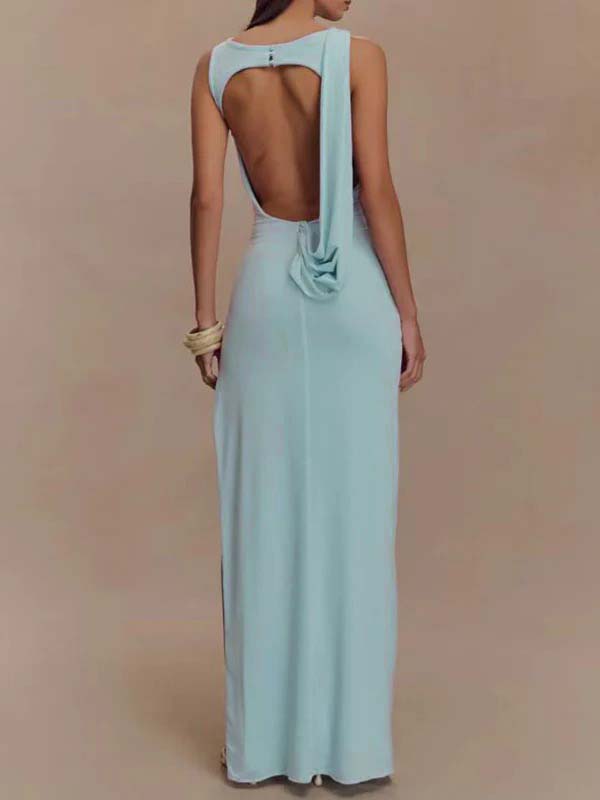 Decoration: Ruched, backless, side slit, bodycon