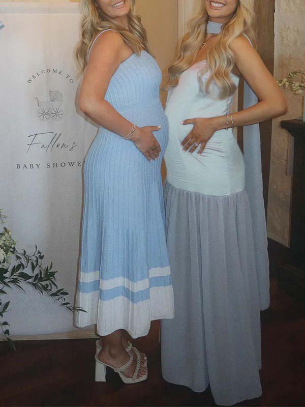 Blue Wrap Chiffon Splicing Flowy Baby Shower Maternity Maxi Dress