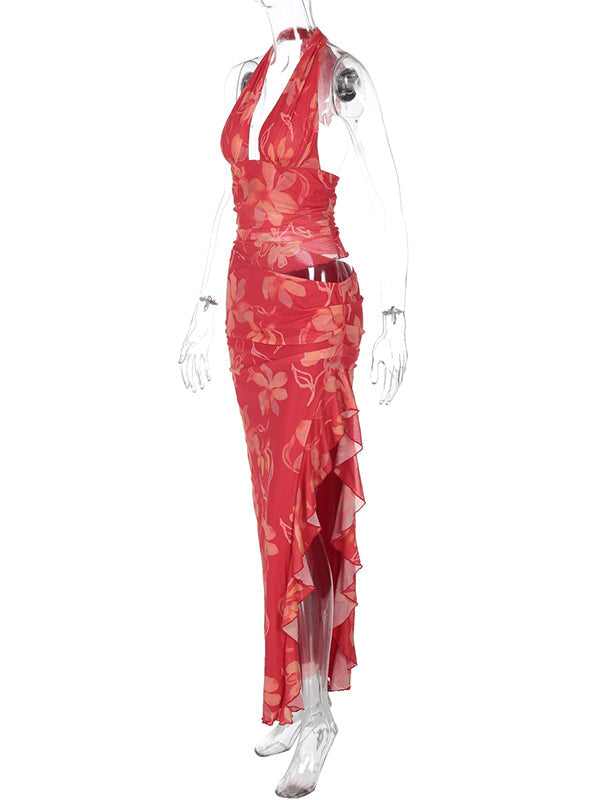 Decoration: Ruffle, falbala, bodycon, side slit, two piece set, backless, crop, ruched