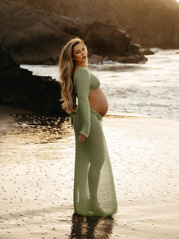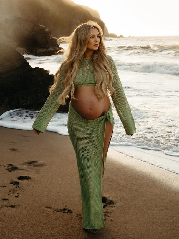 fotobeyou 2-in-1 Cut Out Side Slit Fashion Vacation Cover Up Beach Photoshoot Maternity Maxi Dress