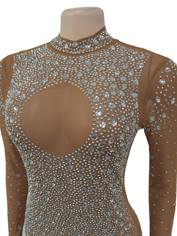 Decoration: Diamonds, rhinestone, mesh, back slit, cut out, sheer