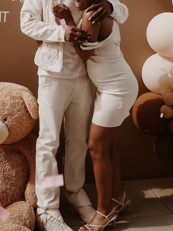 fotobeyou Apricot Irregular Neck Asymmetric Shoulder Bandage Party Dress Bodycon Baby Shower Maternity Mini Dress