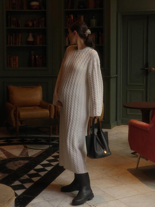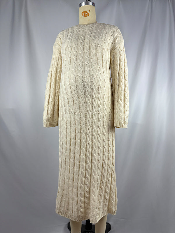 fotobeyou Apricot Knit Ribbed Elegant Going Out Cozy Casual Maternity Sweater Maxi Dress
