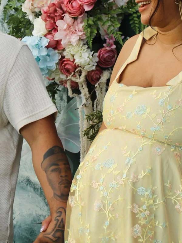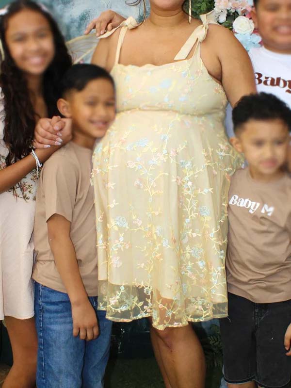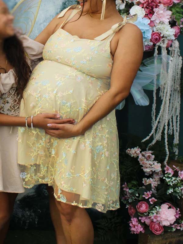 fotobeyou Apricot lace-up Embroidery Stamp Duty Maternity Baby Shower Mini Dress