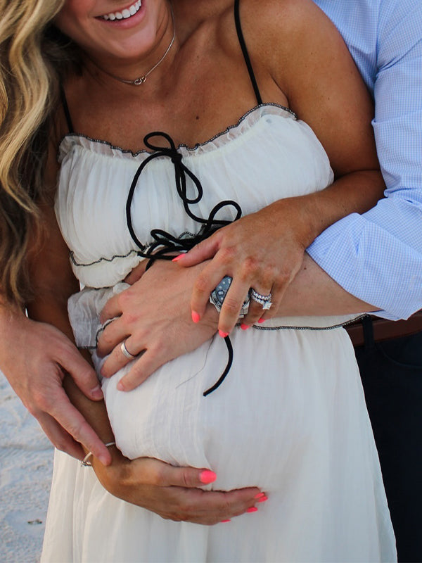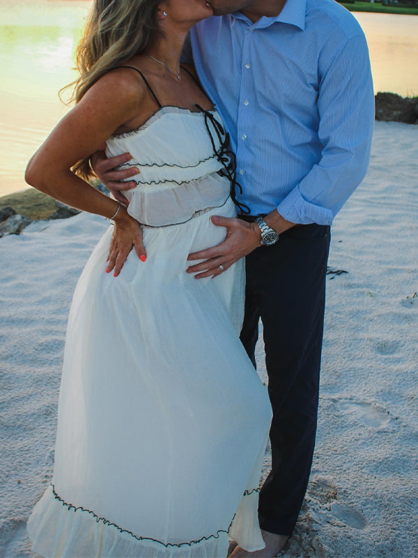 fotobeyou Beige 2-in-1 Cake Ruffle Tie Cute Elegant Flowy Vacation Baby Shower Photoshoot Maternity Maxi Dress