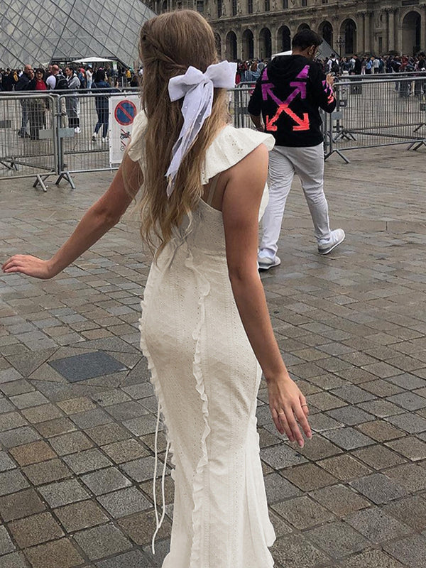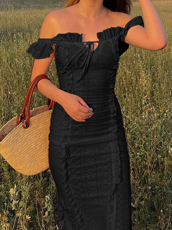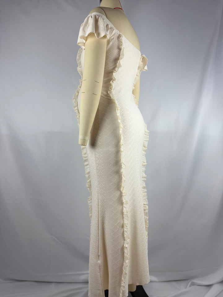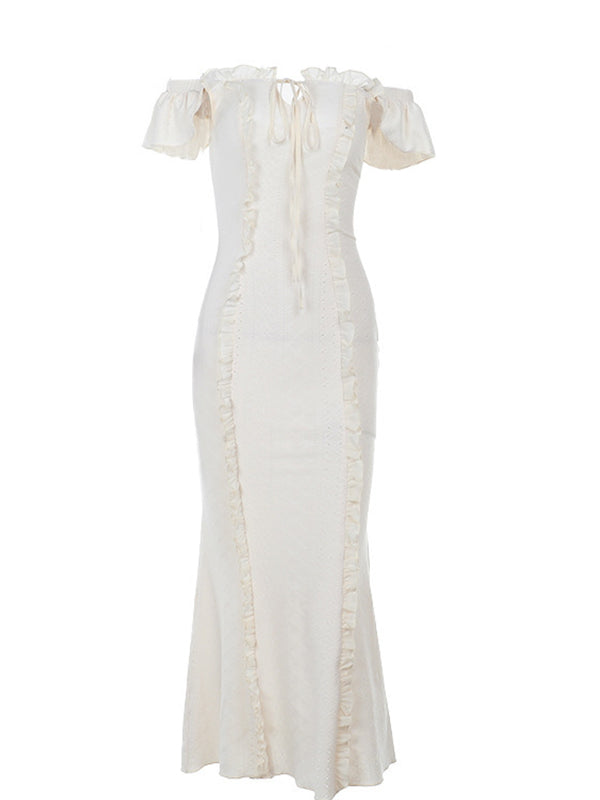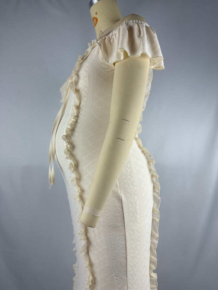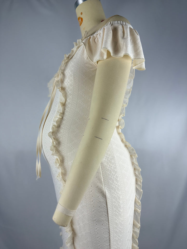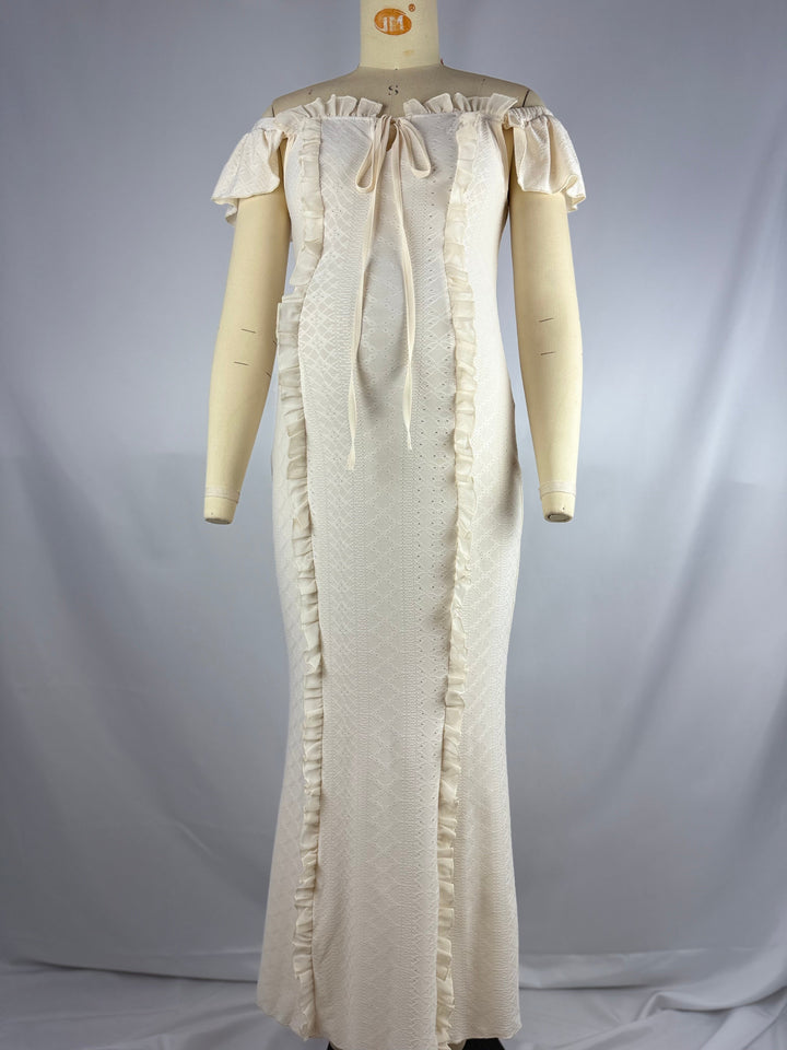 fotobeyou Beige Off Shoulder Lace-up Maternity Photoshoot Maxi Dress