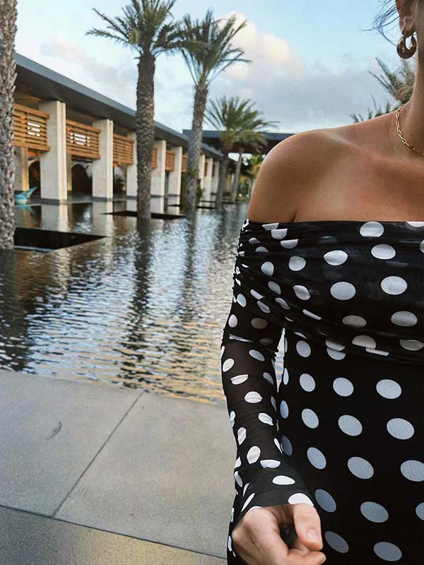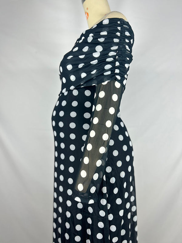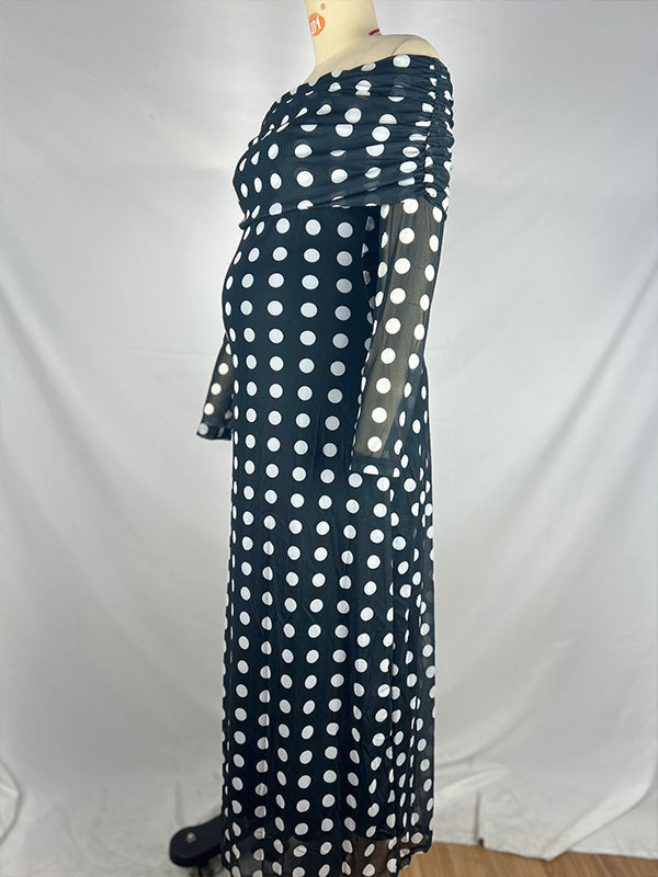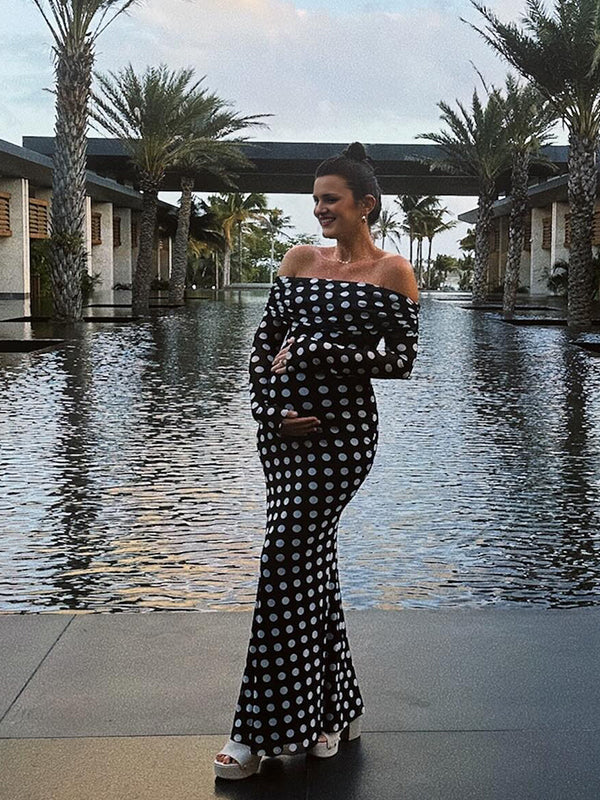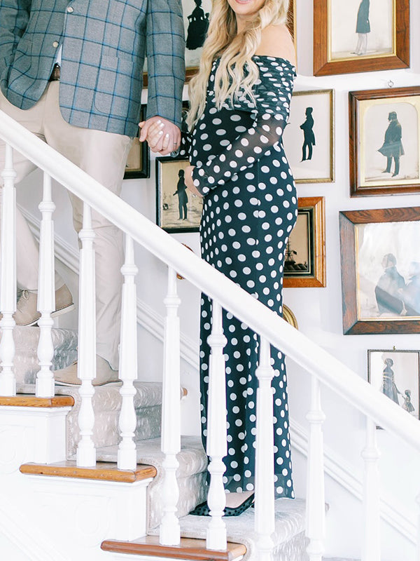 fotobeyou Black And White Polka Dot Off Shoulder Ruched Bodycon Elegant Going Out Cocktail Maternity Photoshoot Maxi Dress