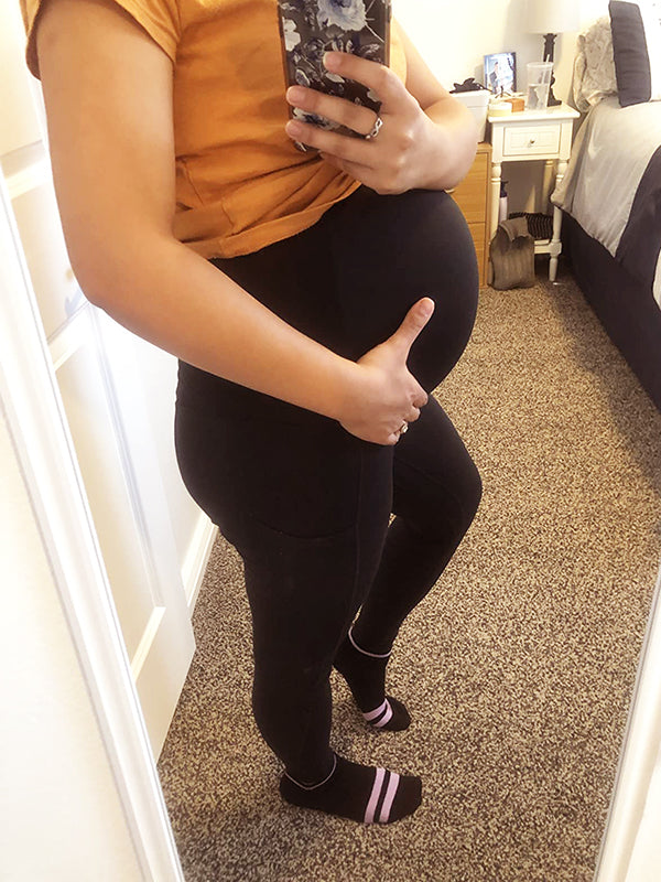 fotobeyou Black Pockets High Rise Stretch Pregnant Legging Sports Maternity Long Leggings