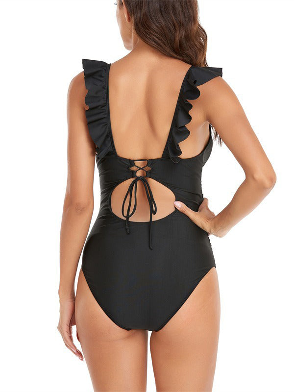 fotobeyou Black Ruffle Back Cut Out One Piece Fashion Beach Vacation Fashion Maternity Swimsuit Swimwear