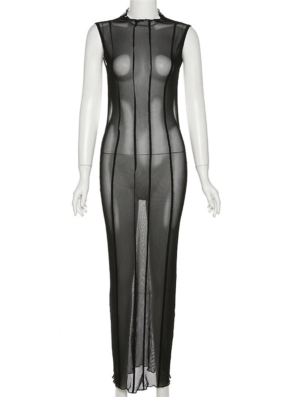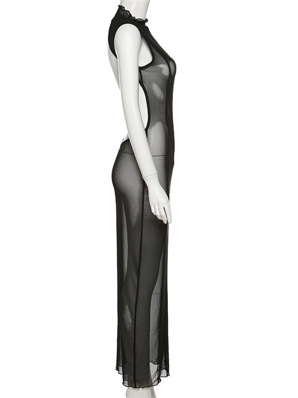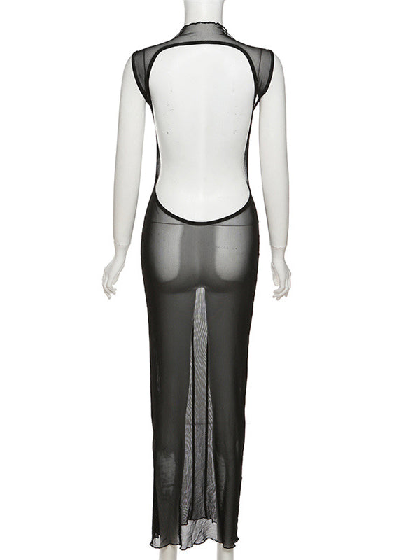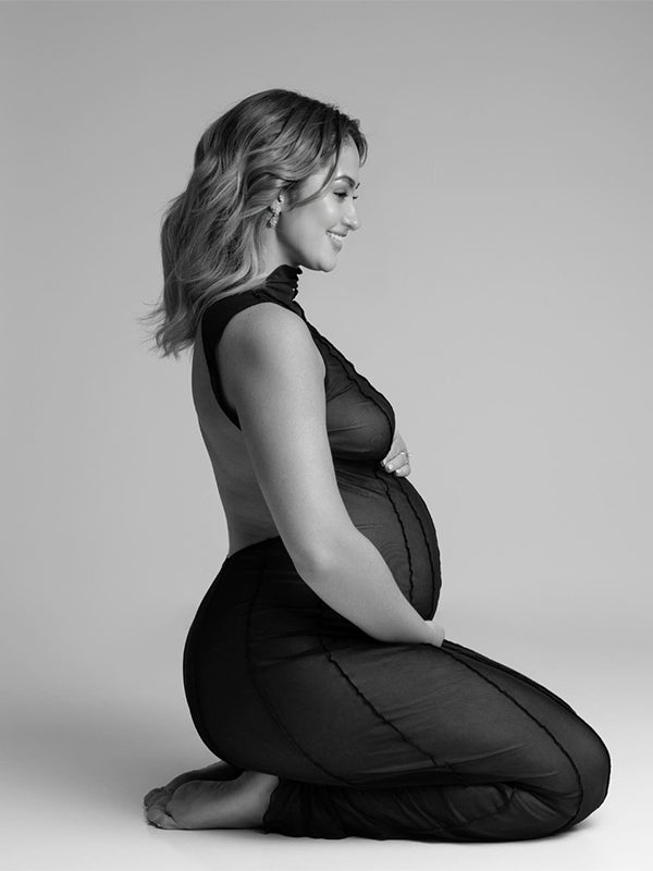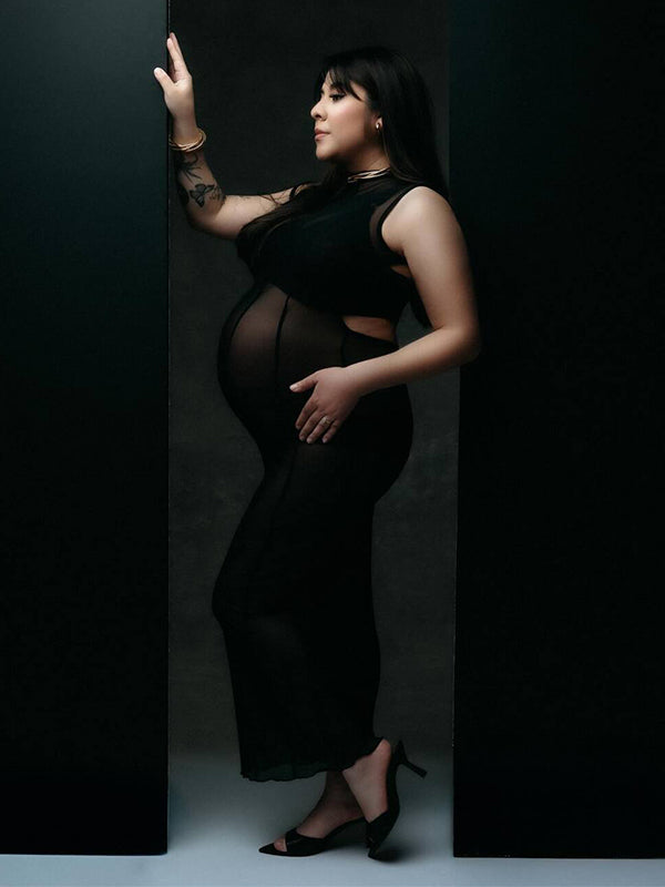 fotobeyou Black Sheer Backless Band Neck Bodycon Club Fashion Elegant Photoshoot Maternity Maxi Dress