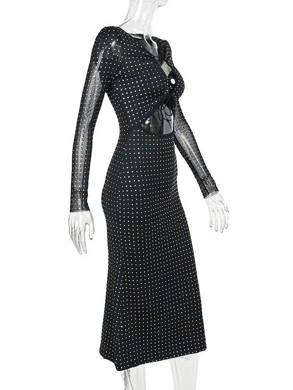 fotobeyou Black Sparkly Cut Out Tie Sheer Bodycon Elegant Photoshoot Baby Shower Maternity Maxi Dress