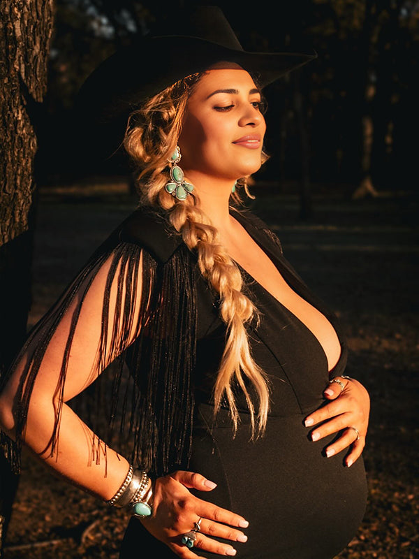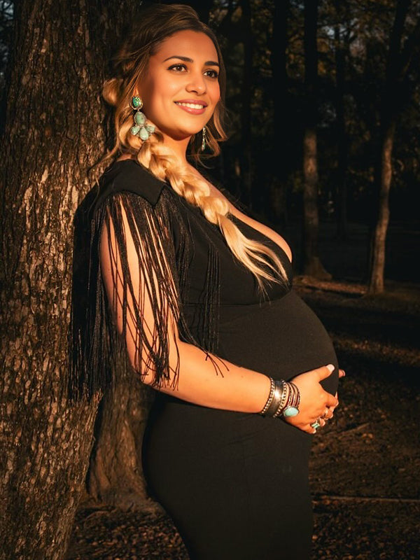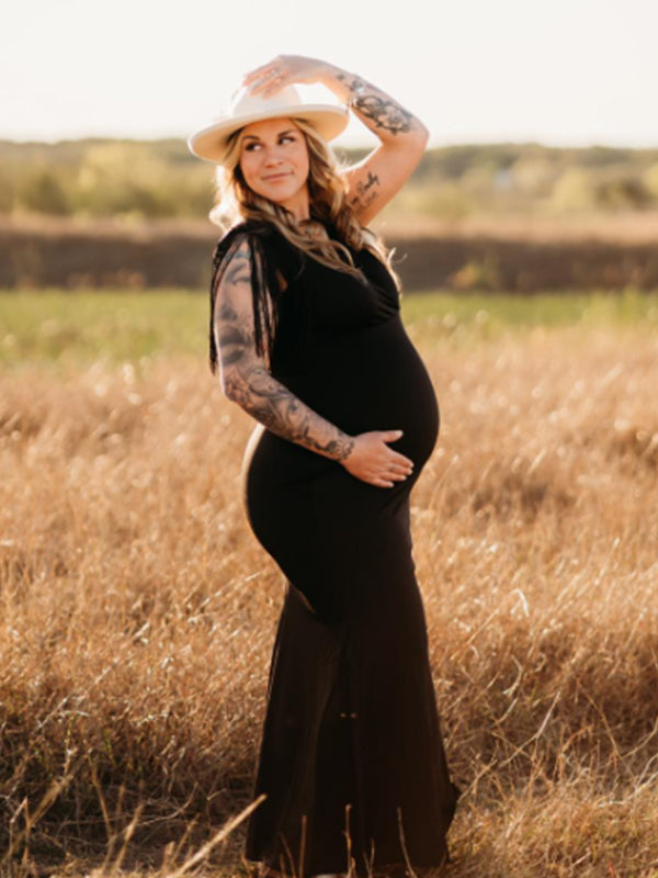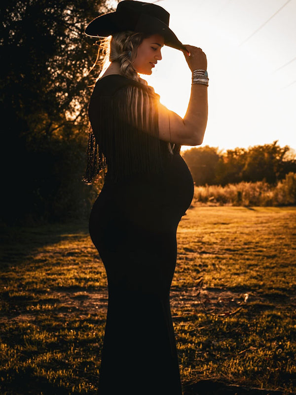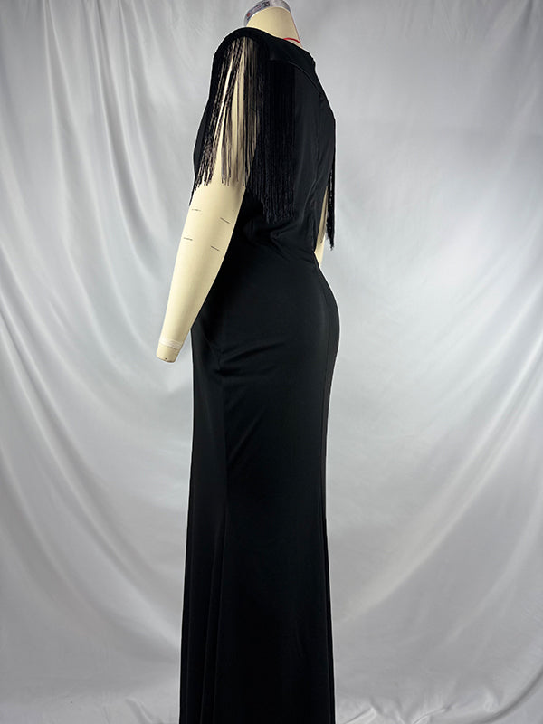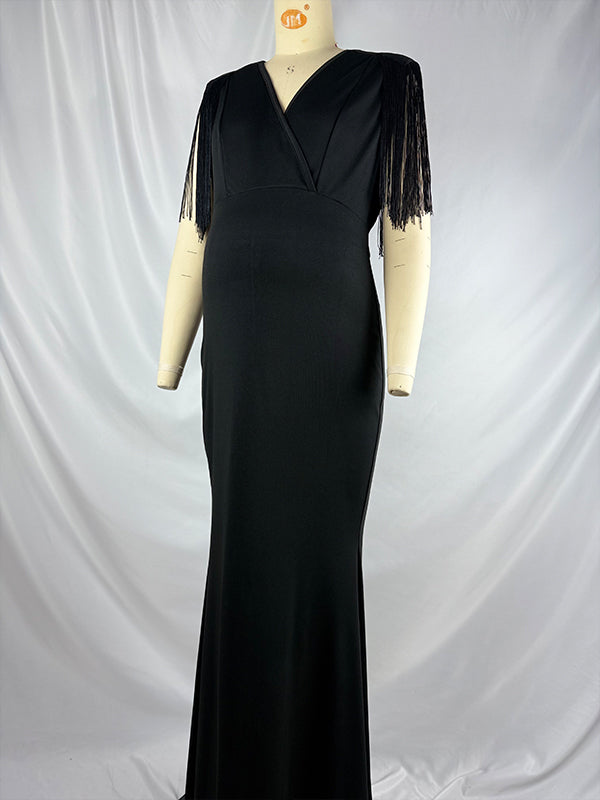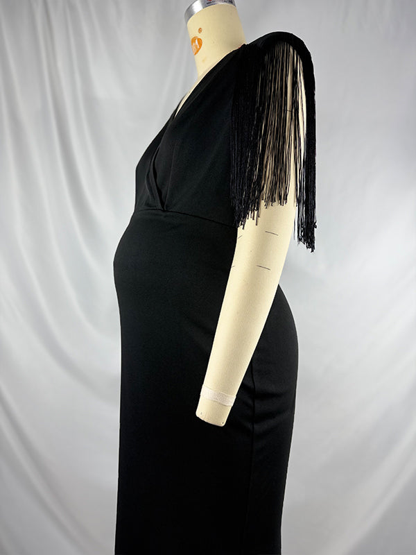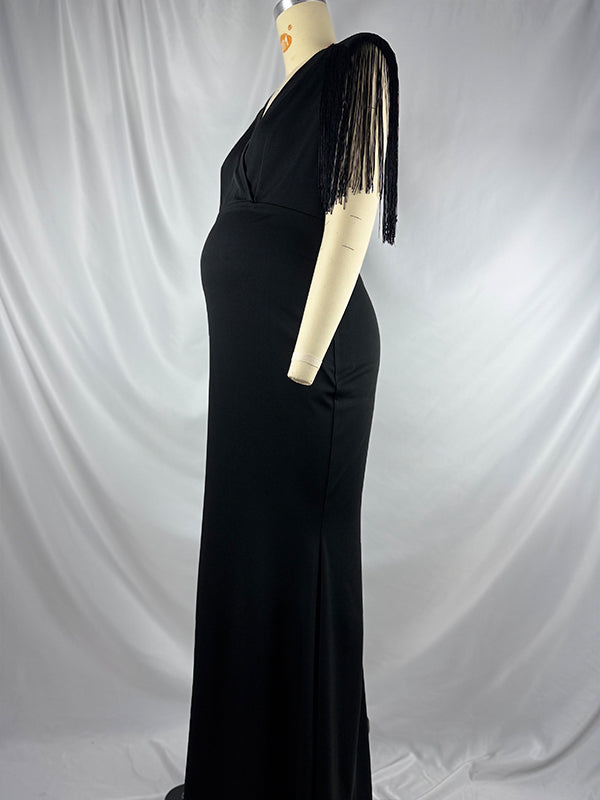 fotobeyou Black Tassel Fringe Cross Chest Mermaid Plus Size Elegant Maternity Maxi Dress