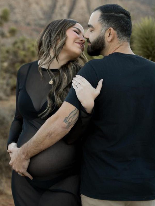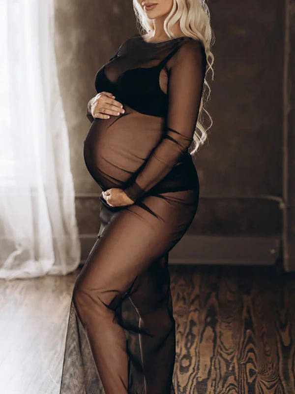 fotobeyou Black Tulle Pregnancy Dress Grenadine Sheer?Maternity?Photoshoot Dress