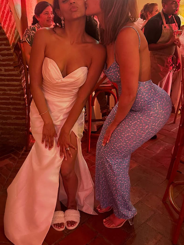 fotobeyou Blue Flowers Spaghetti Straps Backless Mermaid Bodycon Elegant Photoshoot Maternity Baby Shower Midi Dress