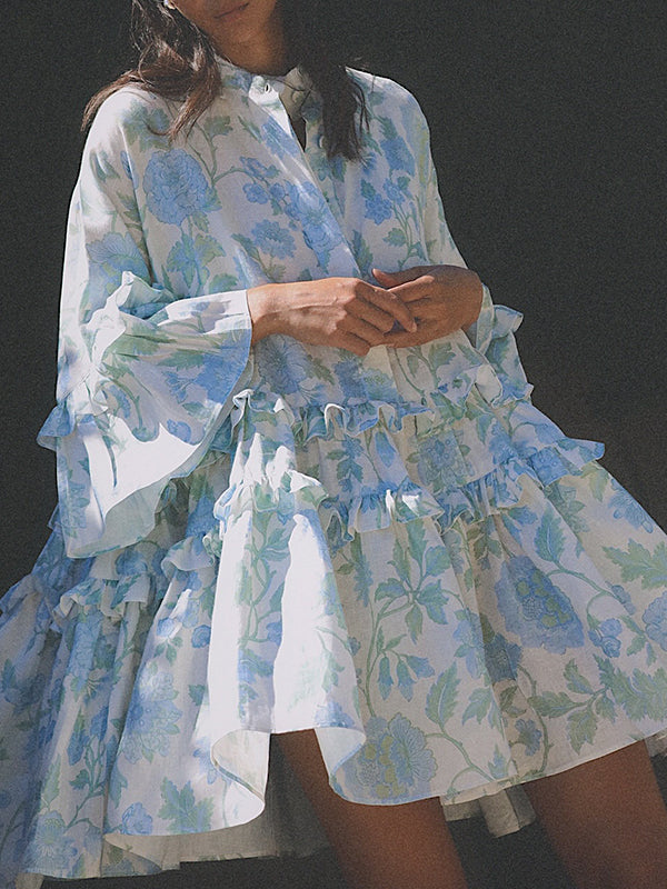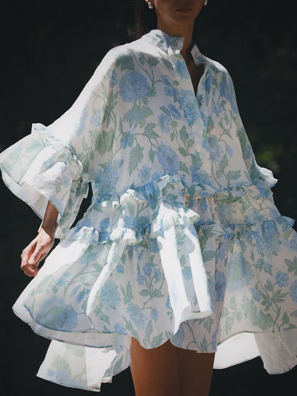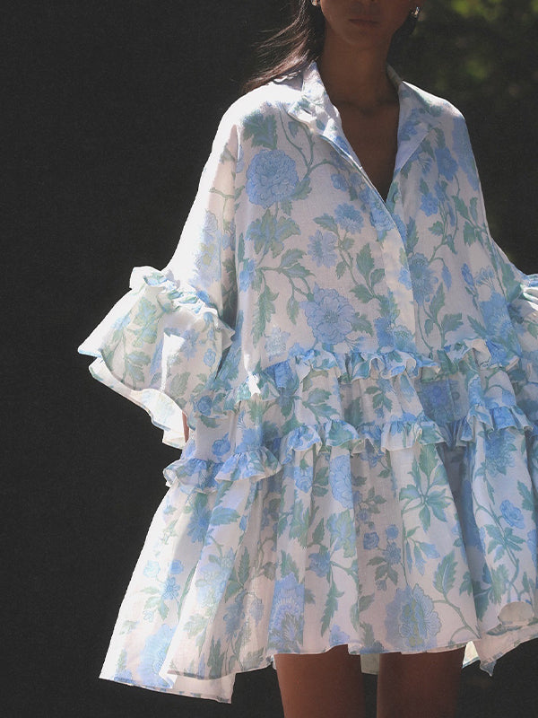 fotobeyou Blue Turndown Collar Three Quarter Length Sleeve Peplum Adorable Tutu Maternity Photoshoot Mini Dress