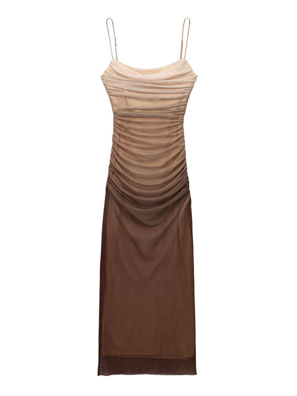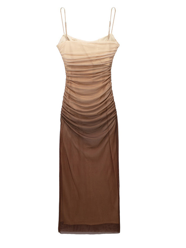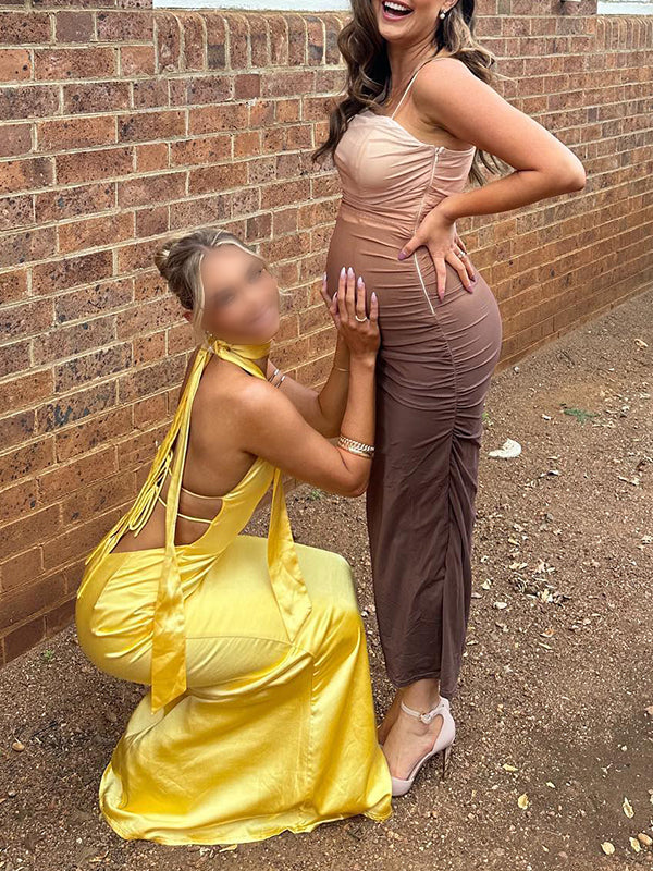 fotobeyou Brown Gradient Color Ruched Grenadine Bodycon Fashion Daily Baby Shower Maternity Maxi Dress