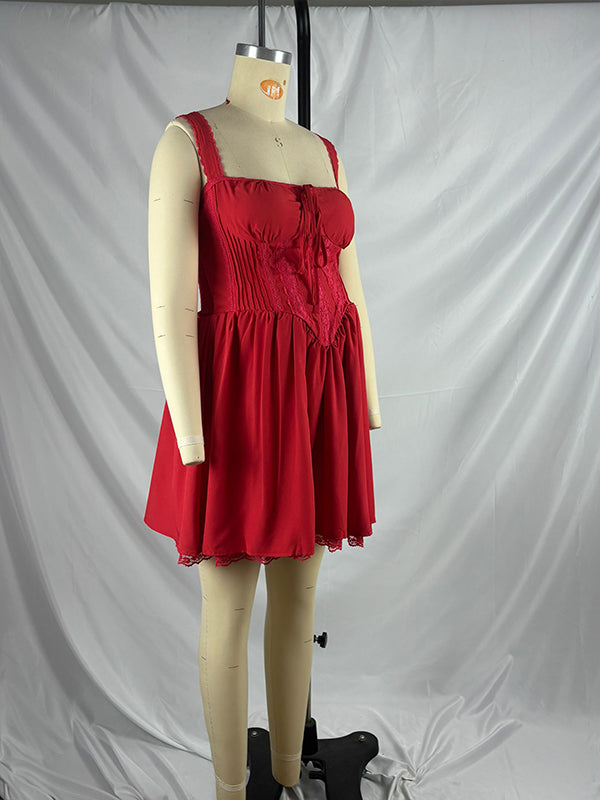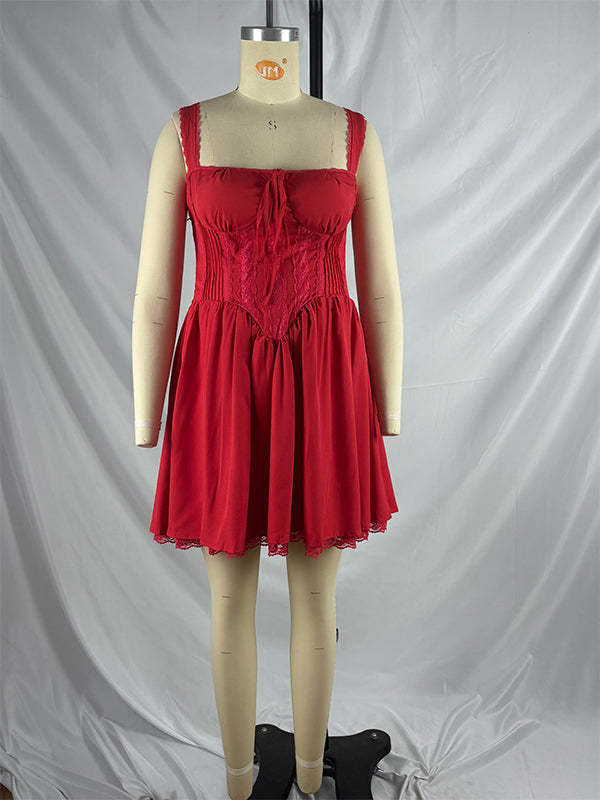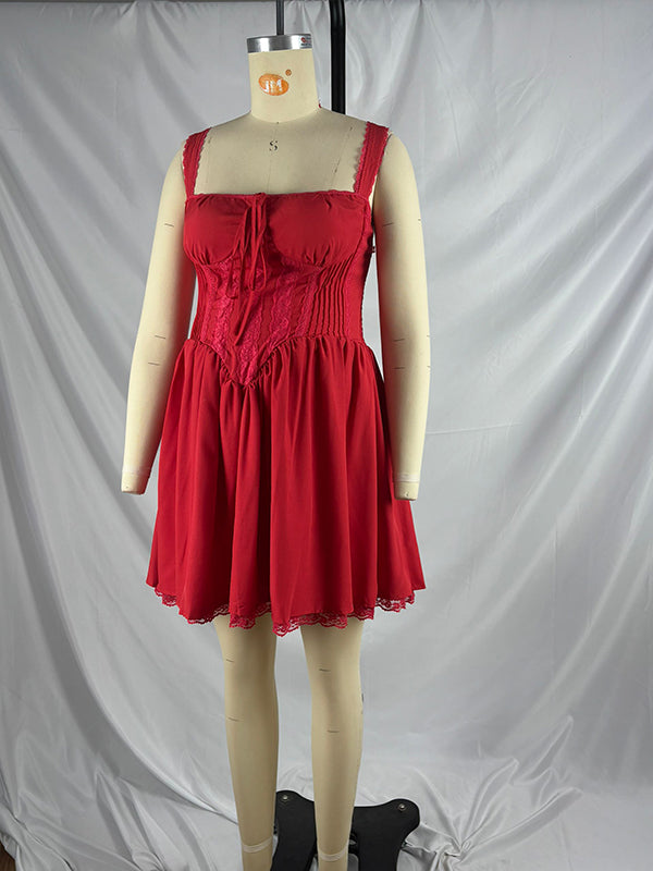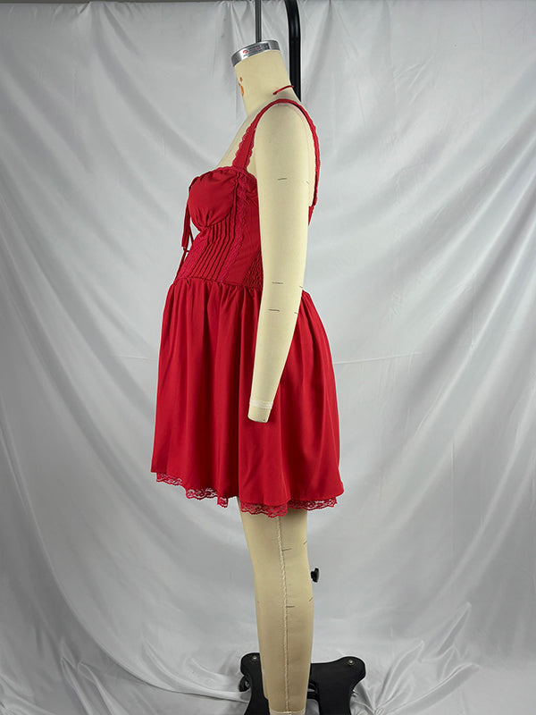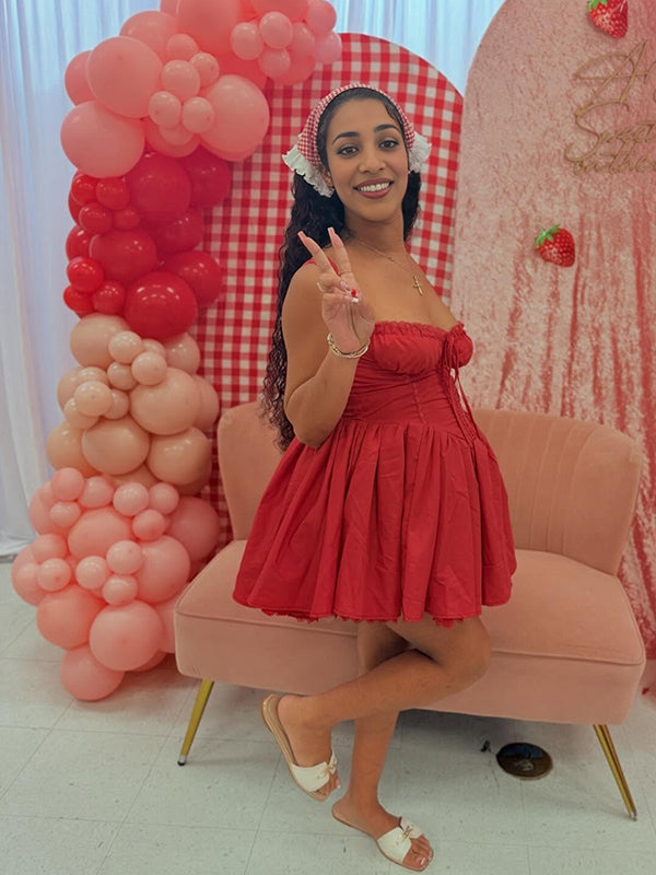 fotobeyou Cherry Red Lace-up Corset Lace Trim A-line Elegant Party Maternity Baby Shower Mini Dress