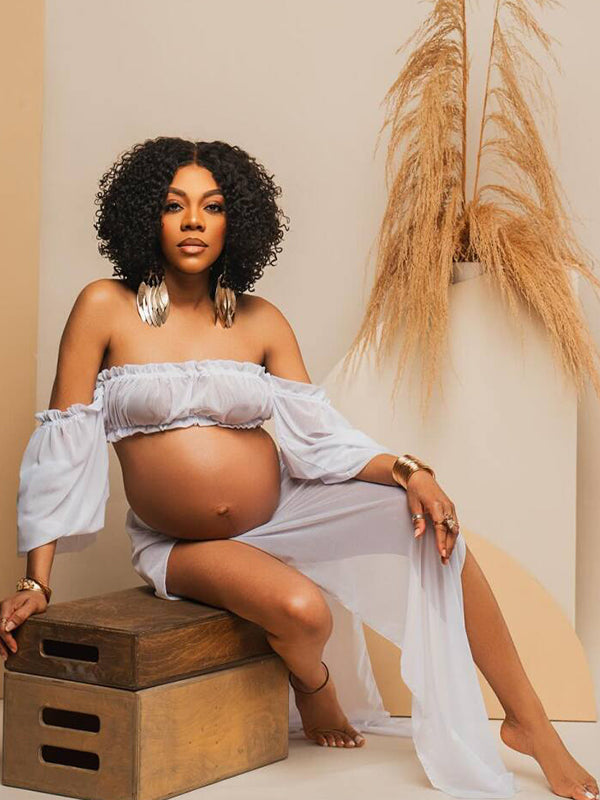 fotobeyou Chic White Two Piece Falbala Slits On Both Sides Transparent Off Shoulder Flowy Beach Maternity Photoshoot Maxi Dress