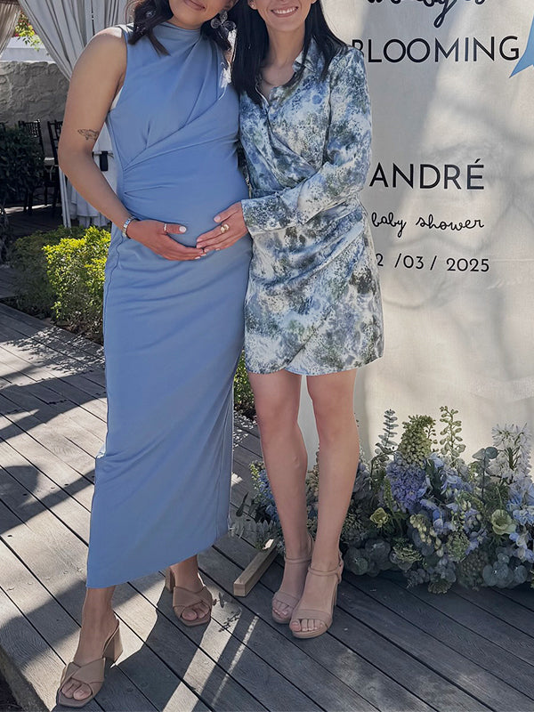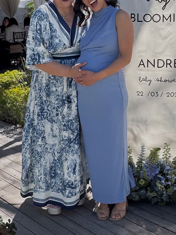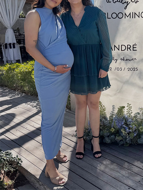 fotobeyou Cross Ruched Back Zipper Gender Reveal Baby Boy Shower Maternity Maxi Dress