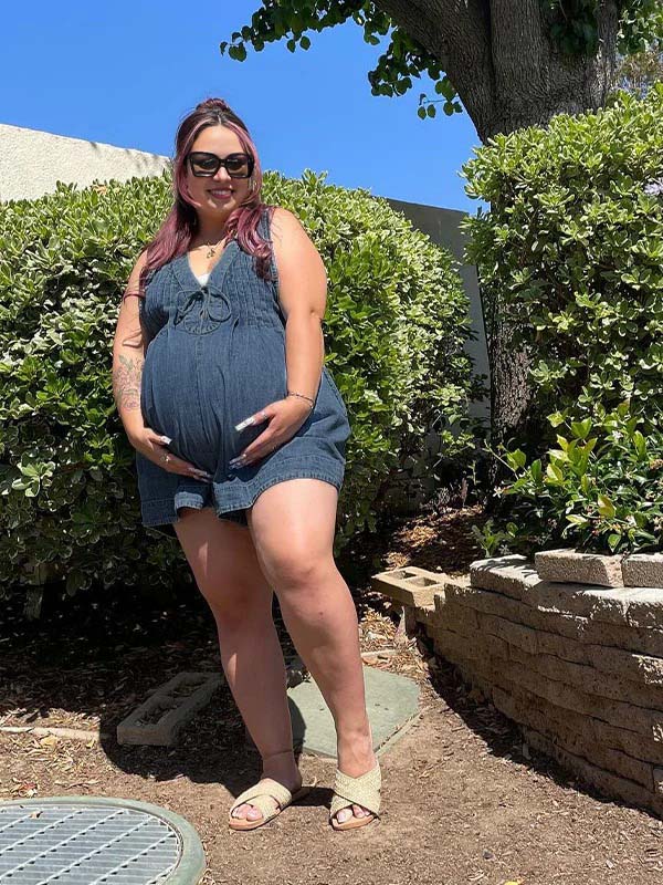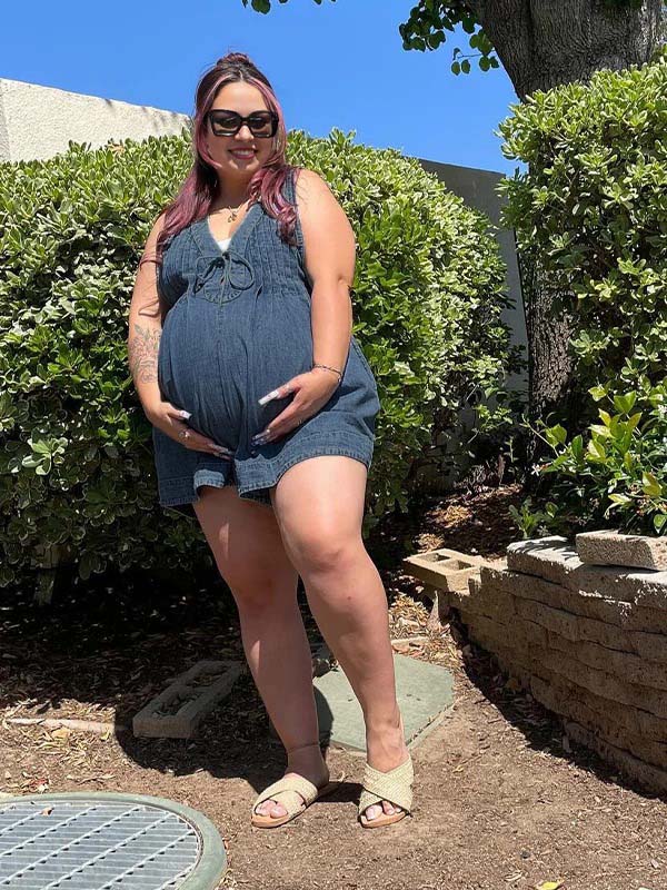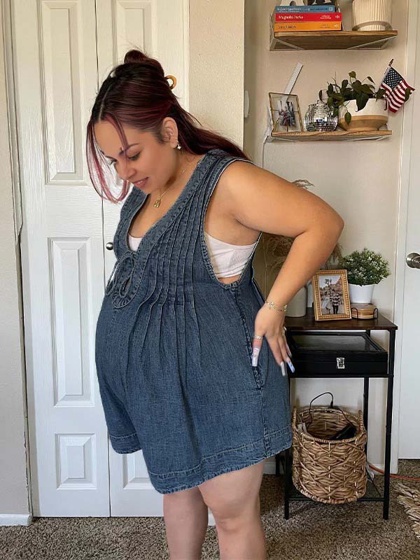 fotobeyou Dark Blue Bow Pockets Draped Denim Daily Going Out Maternity Jumpsuit