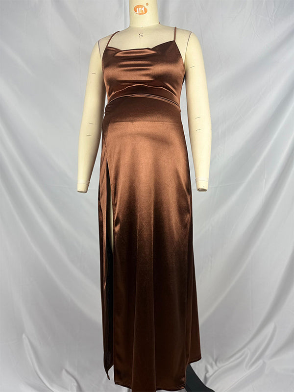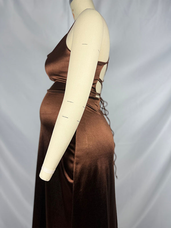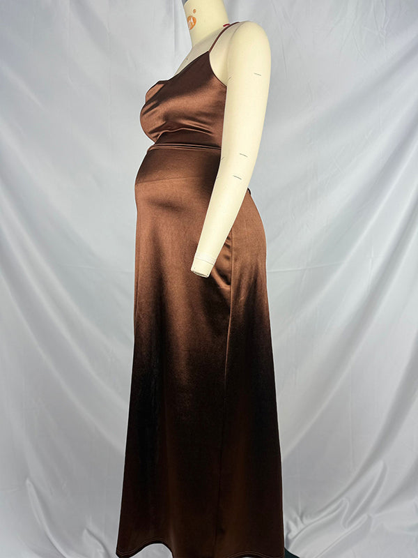 fotobeyou Dark Coffee Slit Spaghetti Straps Backless Elegant Maternity Photoshoot Maxi Dress