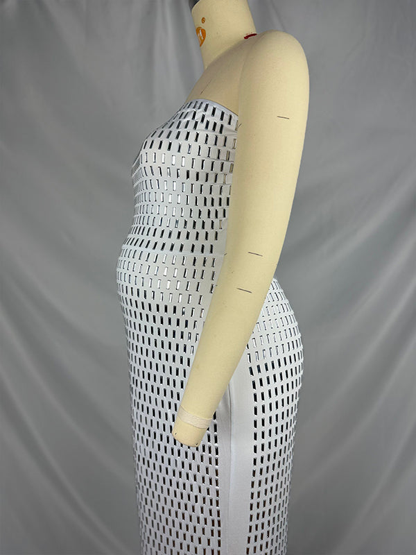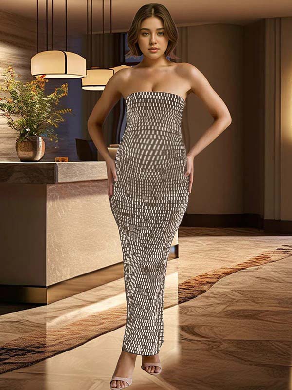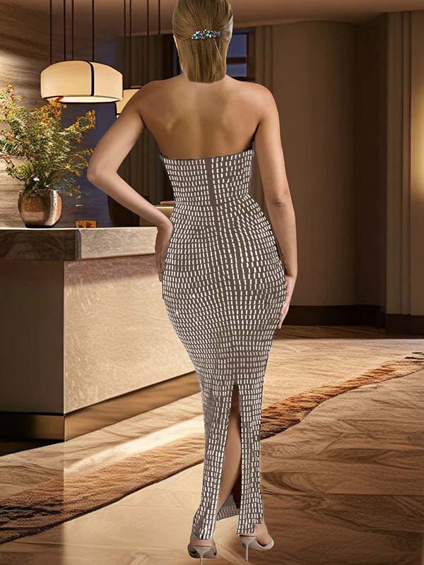 fotobeyou Glitter Diamond Rhinestone Bandeau Back Slit Bodycon Elegant Cocktail Party Maternity Baby Shower Maxi Dress