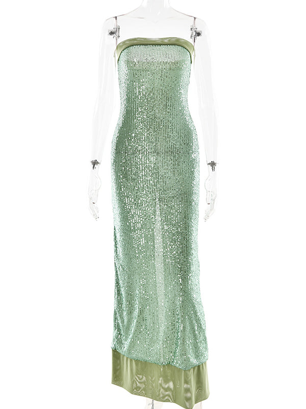 Decoration: Sequin, strapless, bodycon, bandeau, patchwork, back slit