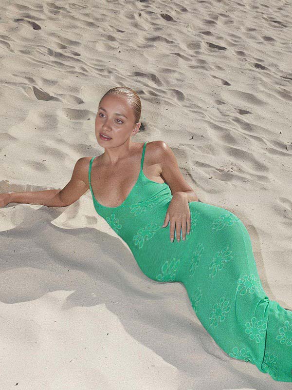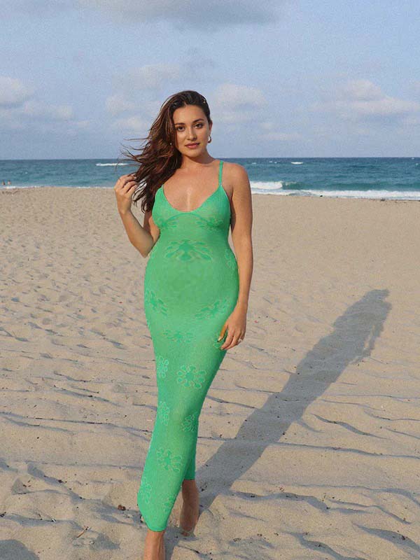 fotobeyou Green Spaghetti Strap Tribal Vacation Beach Maternity Photoshoot Maxi Dress