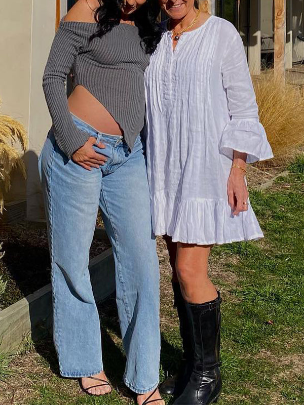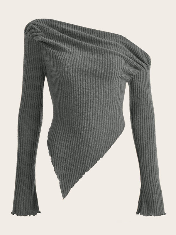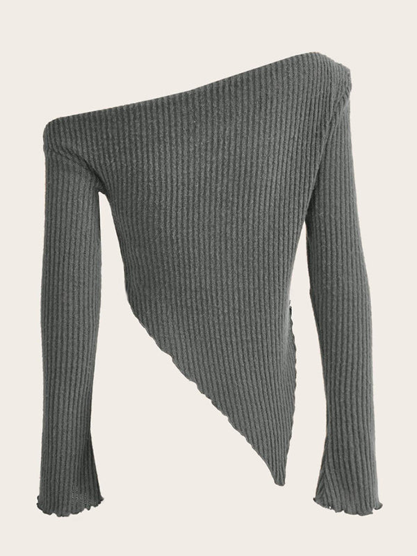 fotobeyou Grey One Shoulder Irregular Ruffle Knit Fashion Daily Fashion Maternity Sweater Top
