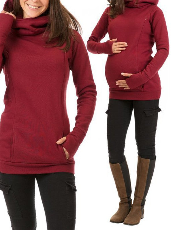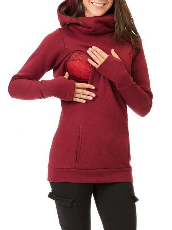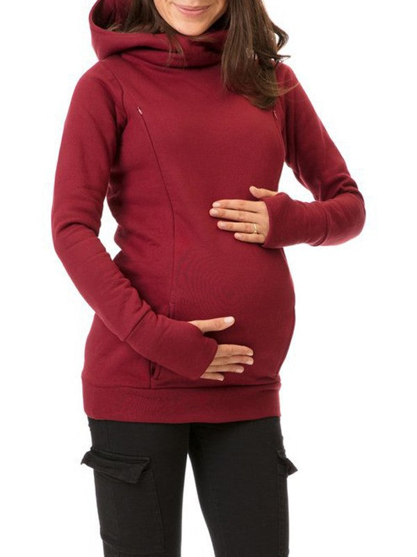fotobeyou Hooded Solid Color Long Sleeve Baby Shower Maternity Daily Nursing Sweatshirt