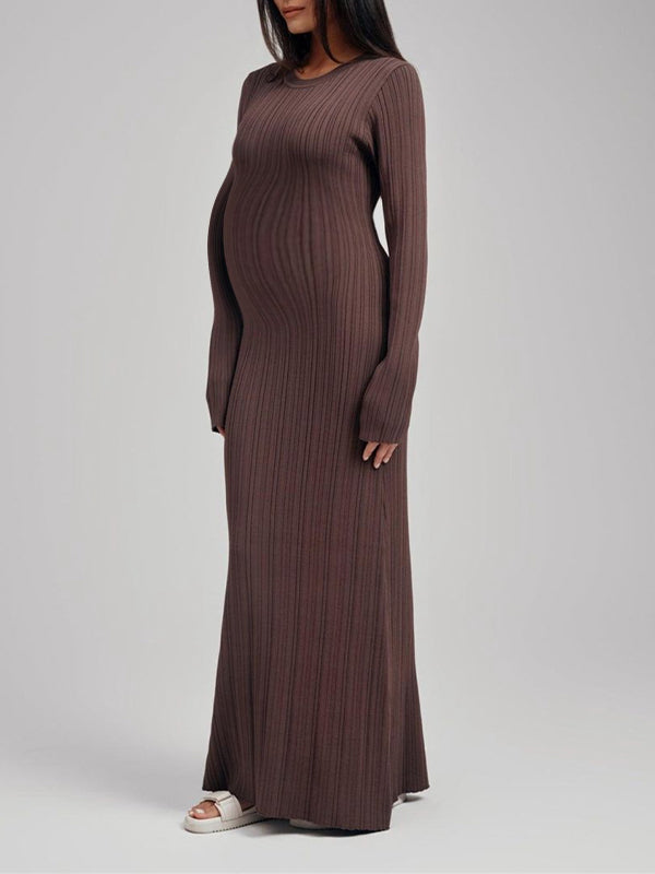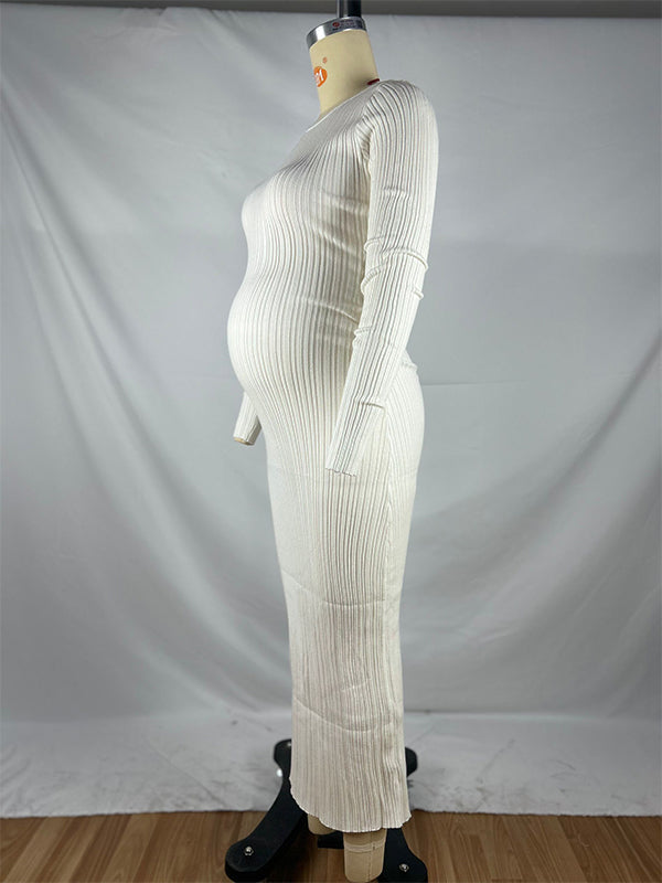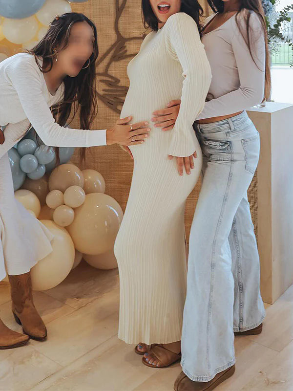 fotobeyou Knit Solid Color Elegant Photoshoot Baby Shower Maternity Maxi Sweater Dress