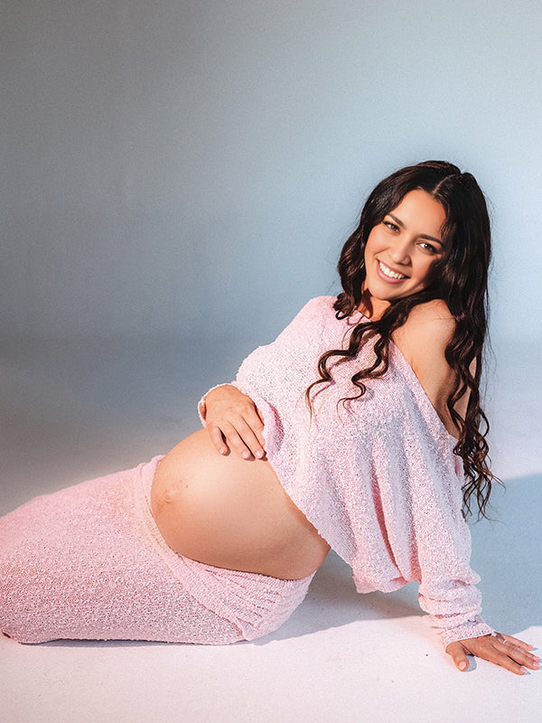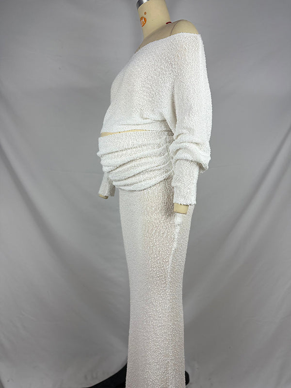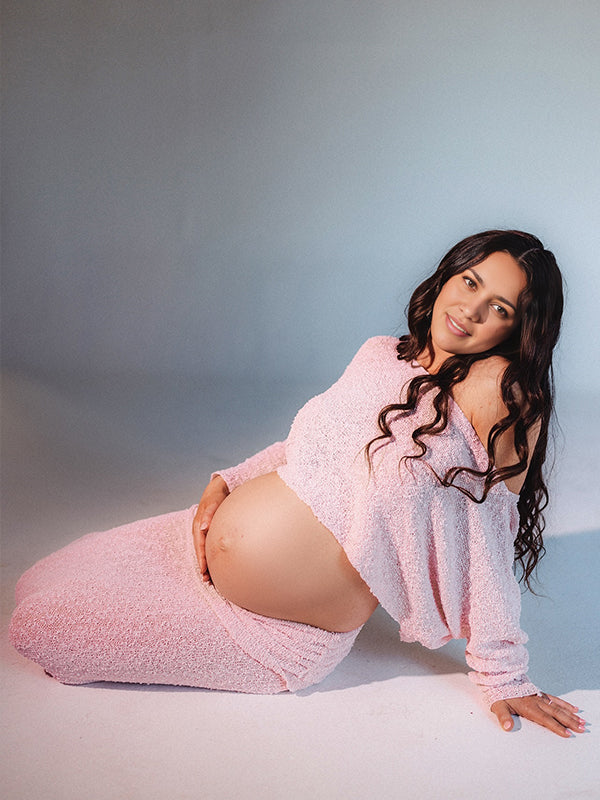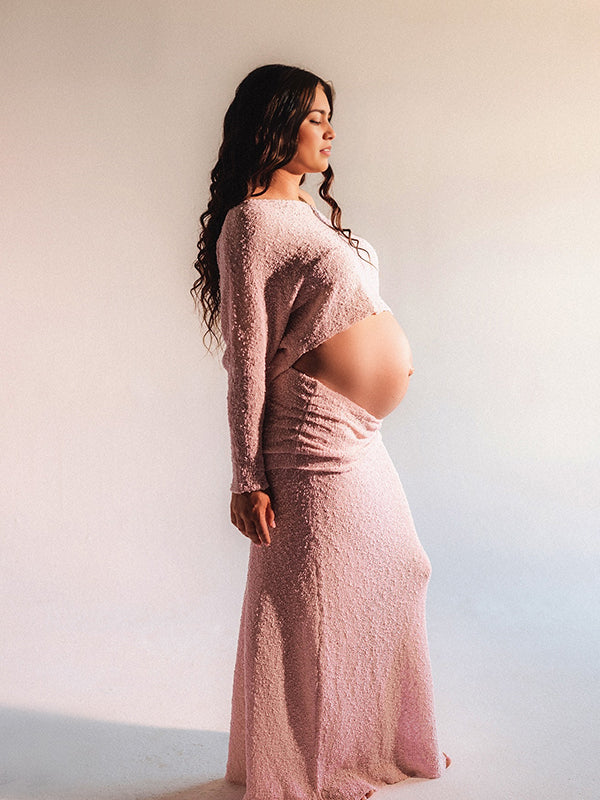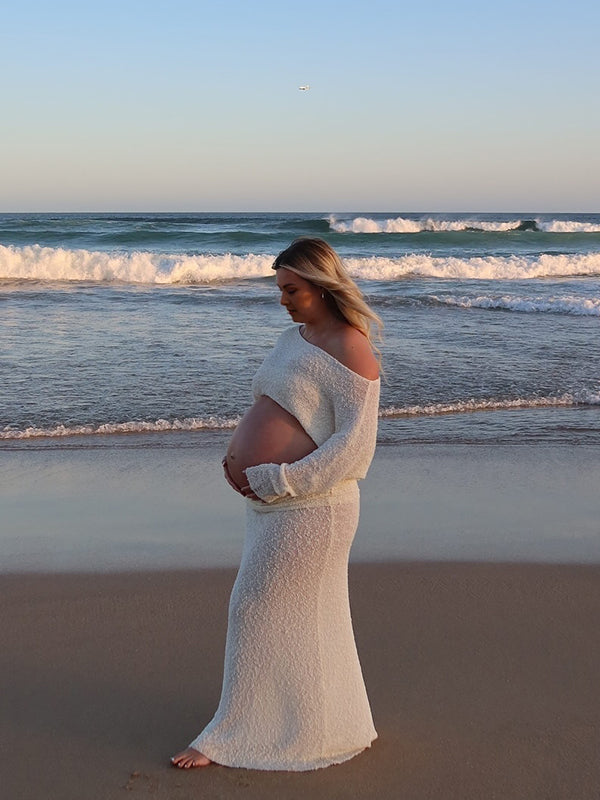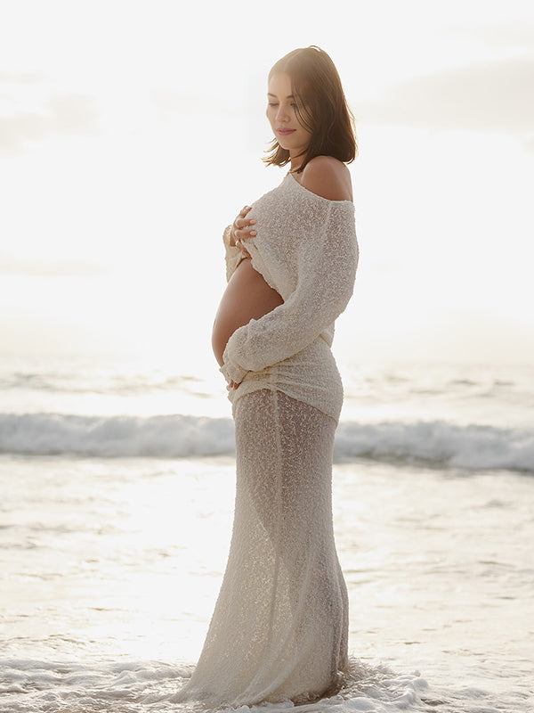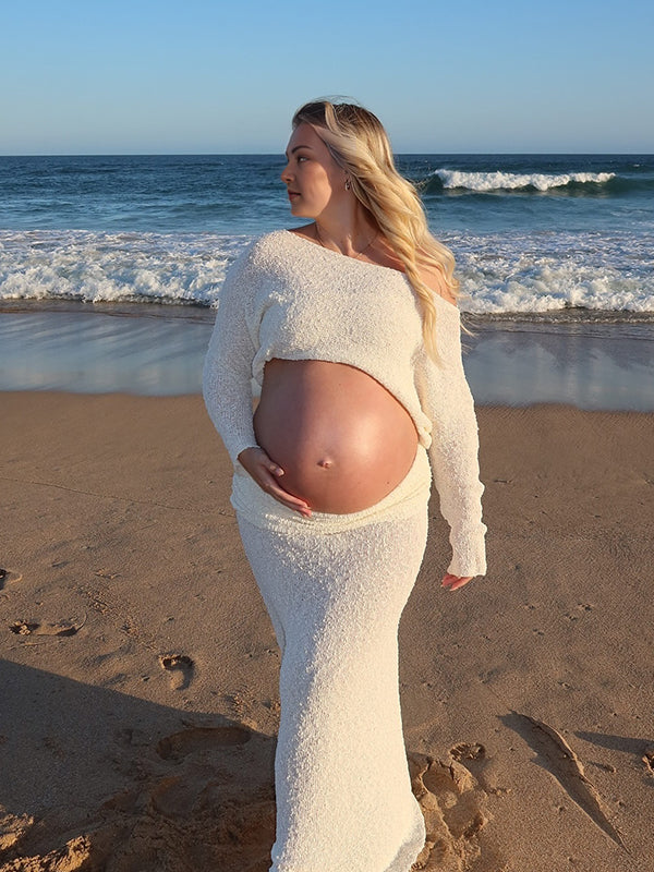 fotobeyou Knitted Ruched Two Piece Set Off Shoulder Crop Top And Bodycon Skirt Elegant Maternity Photoshoot Photoshoot Maxi Dress