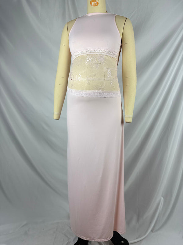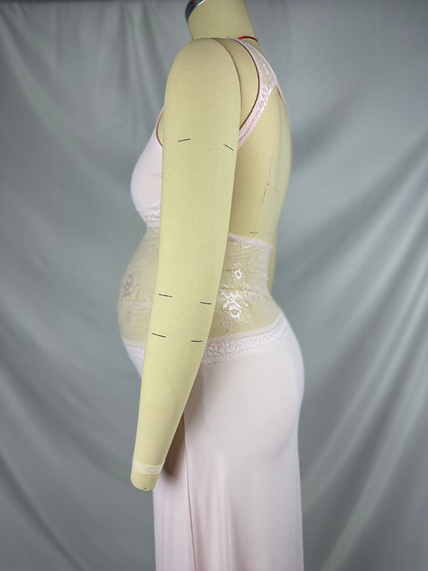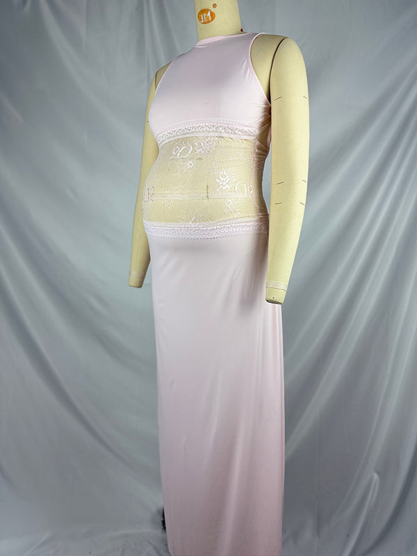 fotobeyou Lace Patchwork Backless Elegant Maternity Baby Shower Maxi Dress