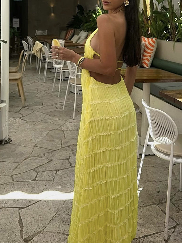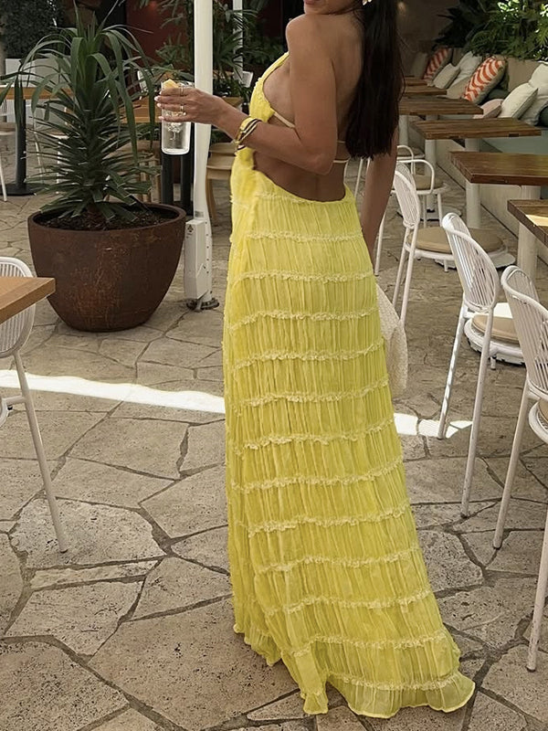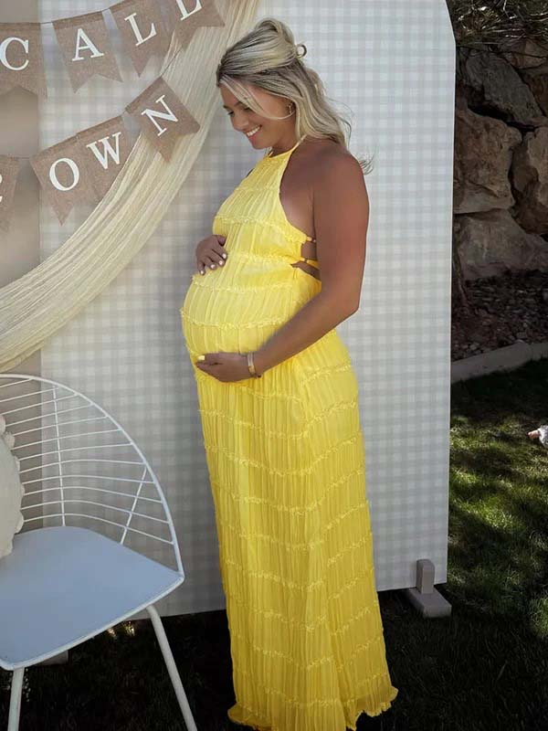 fotobeyou Layered Ruffle Falbala Backless Cami Elegant Maternity Baby Shower Maxi Dress