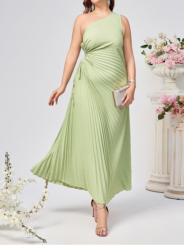 fotobeyou Light Green Irregular Drawstring Side Draped Pleated Photoshoot Maternity Maxi Dresses