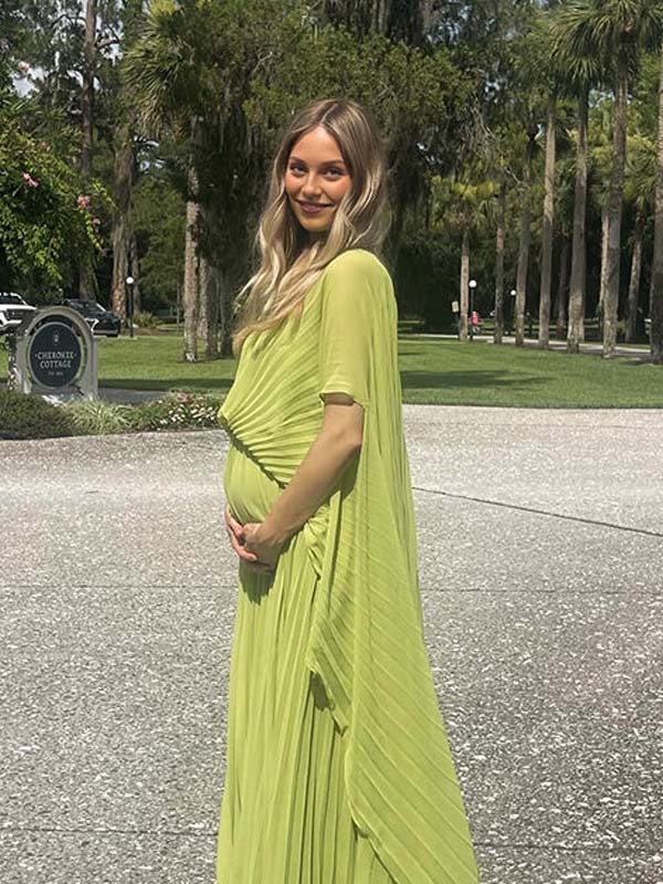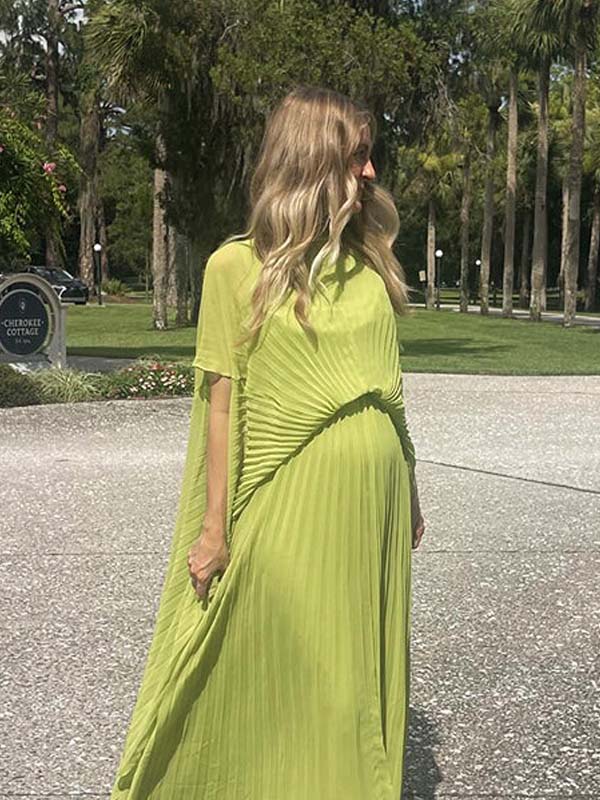 fotobeyou Light Green Pleated Batwing Sleeve Maternity Maxi Dress