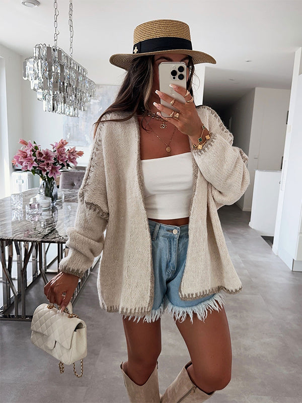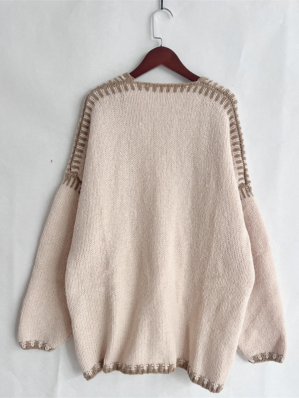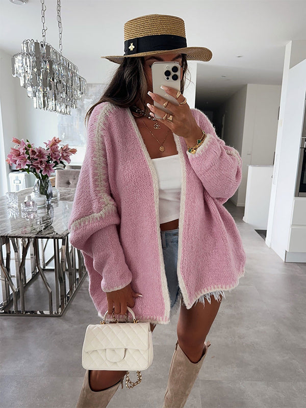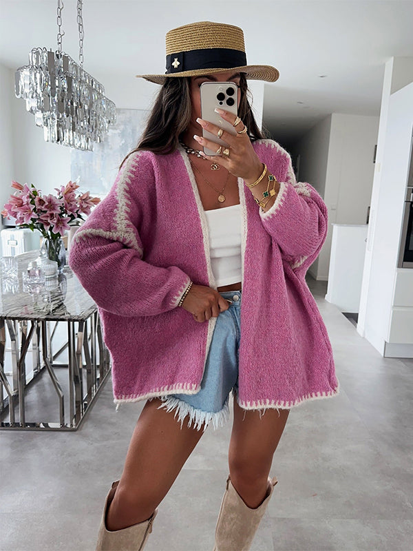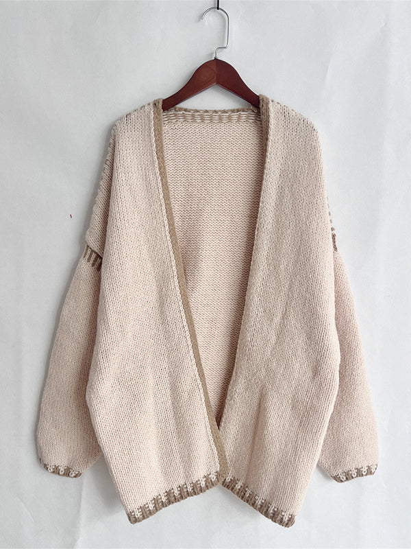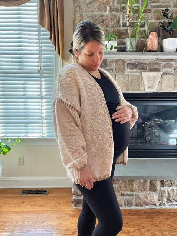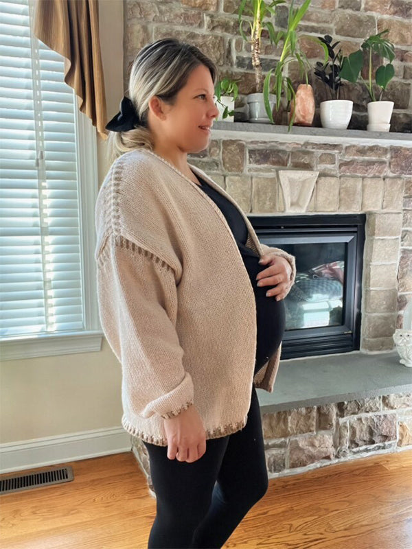 fotobeyou Lines Hit Color Lantern Sleeve Fashion Daily Photoshoot Maternity Sweater Cardigan
