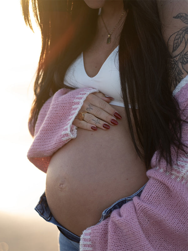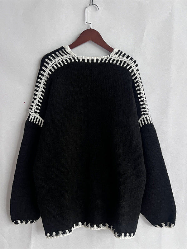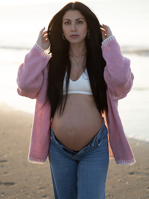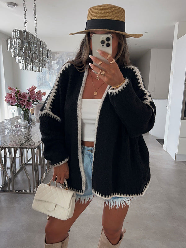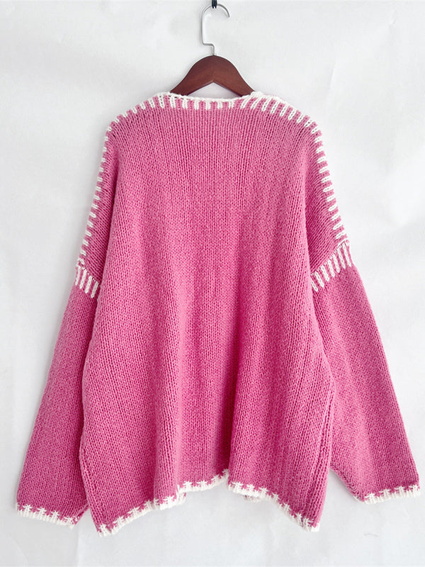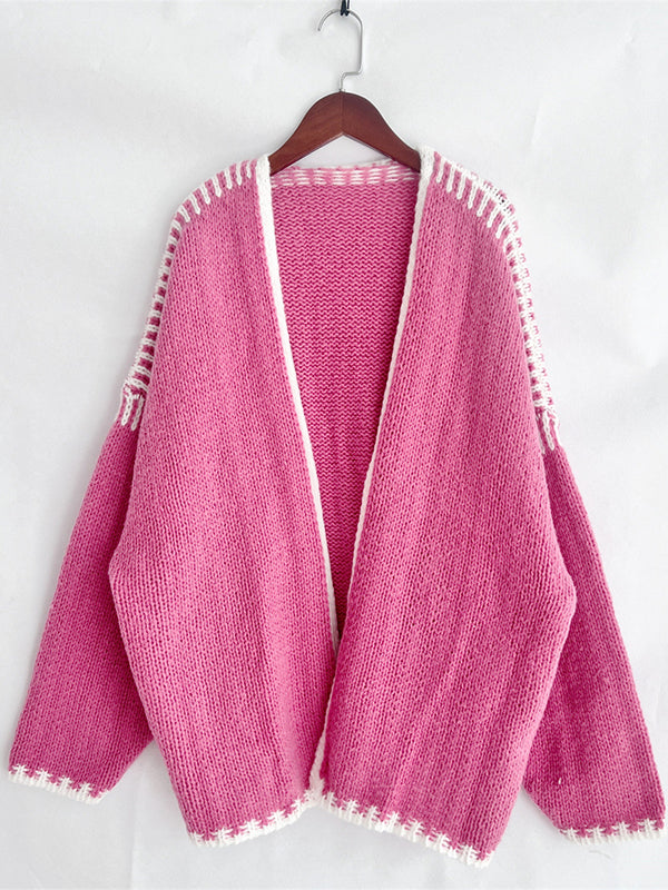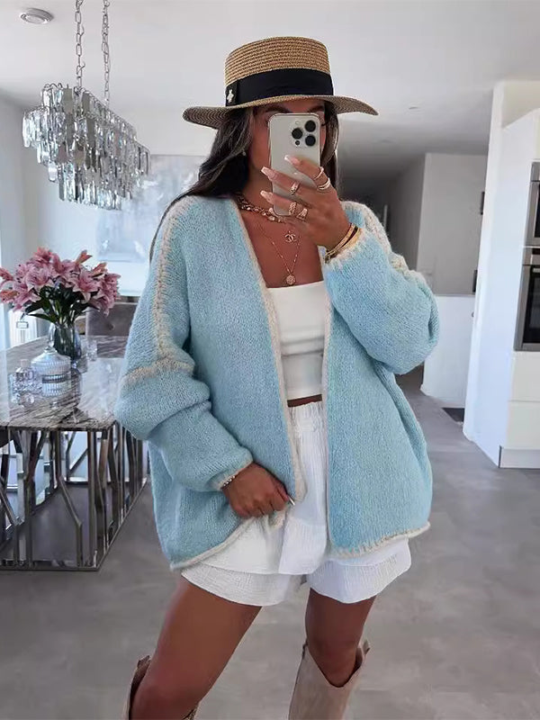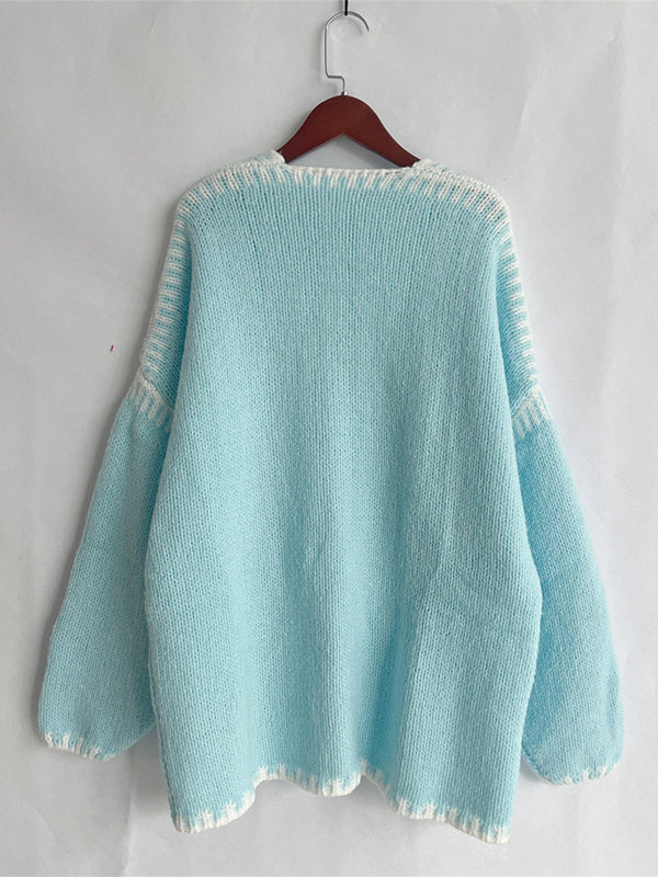 fotobeyou Lines Hit Color Lantern Sleeve Fashion Daily Photoshoot Maternity Sweater Cardigan