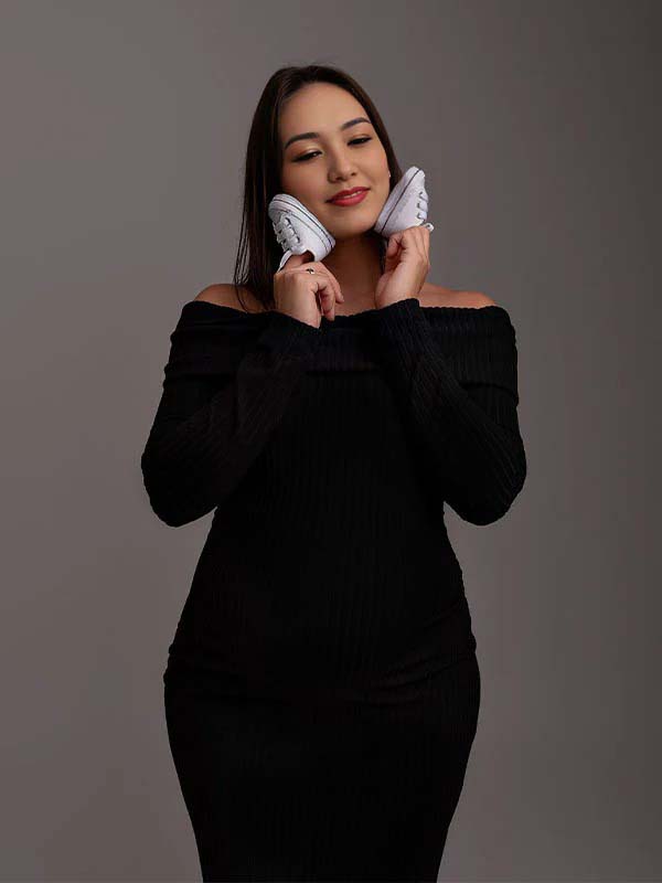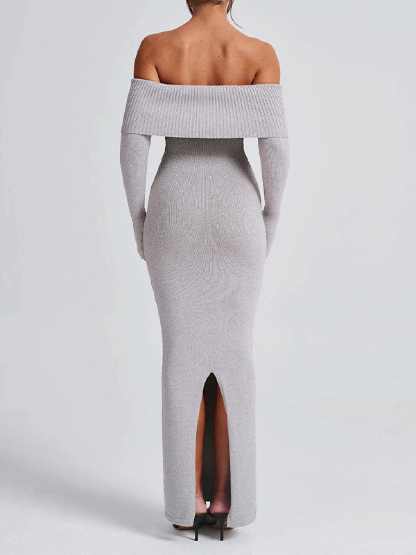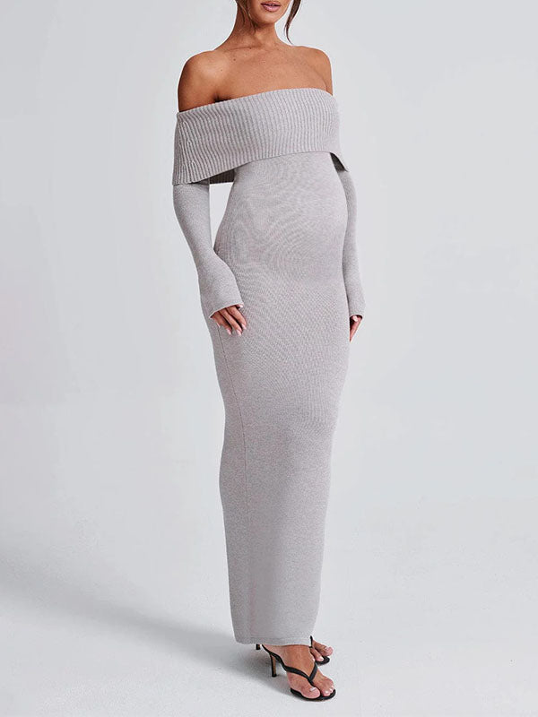 fotobeyou Off Shoulder Back Slit Flare Sleeve Bodycon Elegant Photoshoot Maternity Maxi Sweater Dress