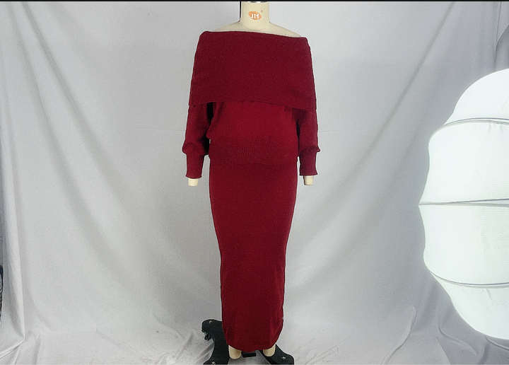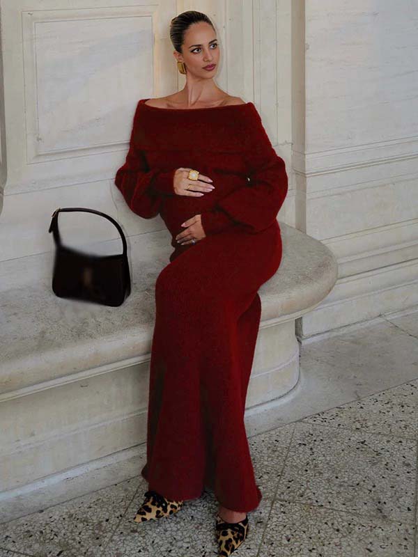 fotobeyou Off Shoulder Bodycon Two Piece Crochet Going Out Fashion Maternity Photoshoot Sweater Maxi Dress