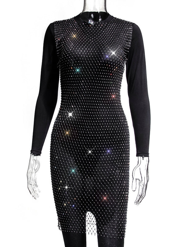 Take your weekend look to a new level with this dress doll. Featuring a black mesh material with rhinestone detail, what's not to love? We love this teamed with heels and a mini bag to complete the look.