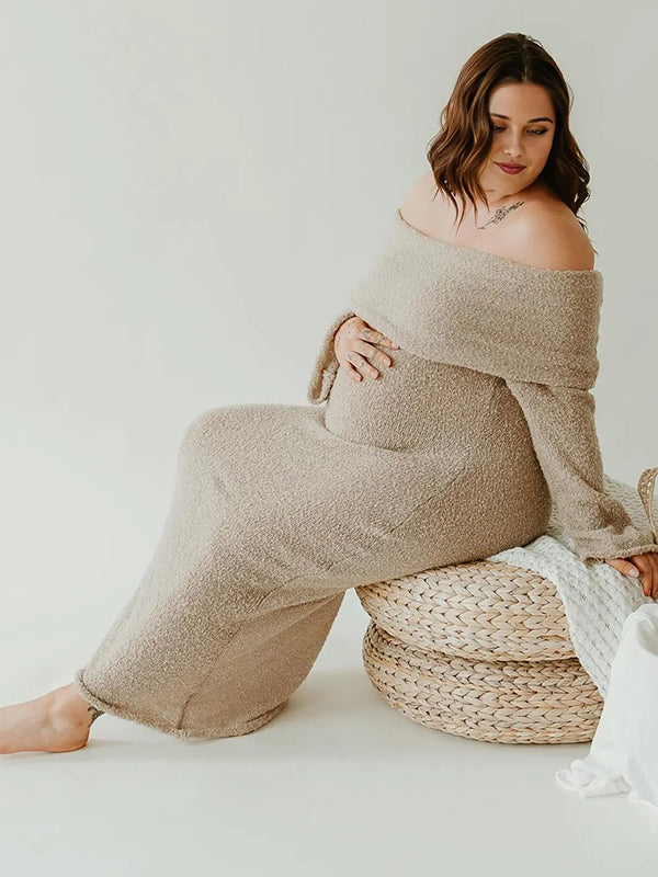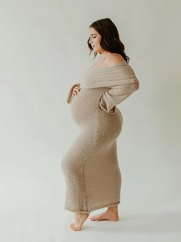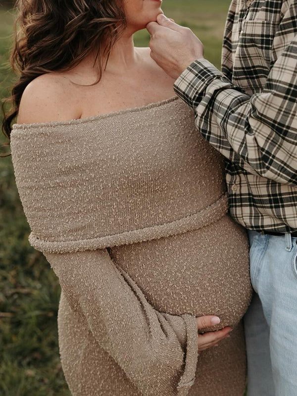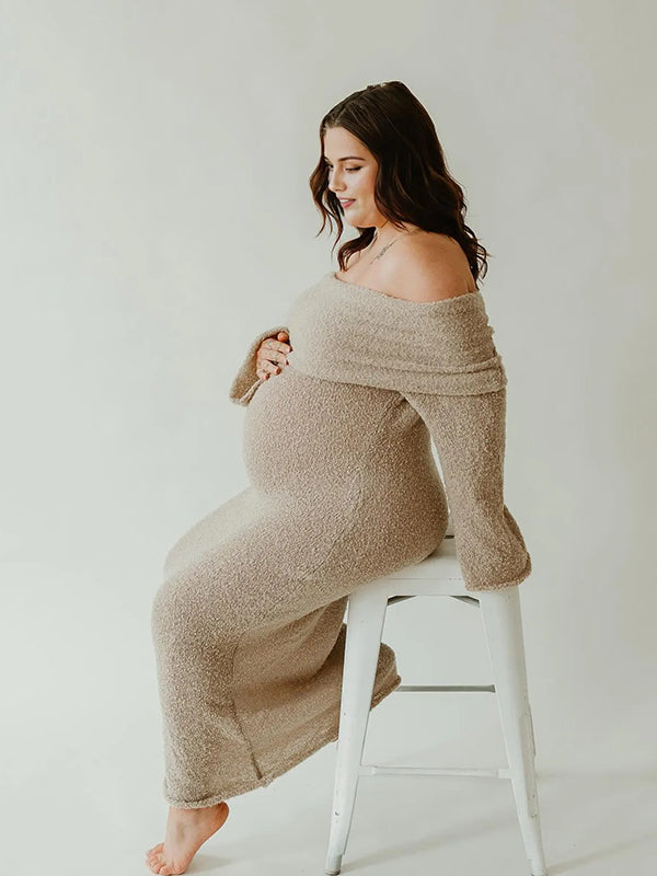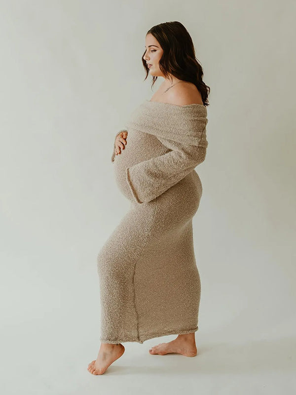 fotobeyou Off Shoulder Hollow Out Knitwear Maternity Maxi Dress