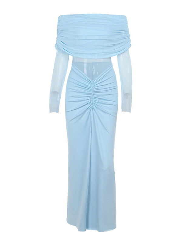 fotobeyou Off Shoulder Mesh Splicing Cascading Ruffle Bodycon Going Out Gowns Photoshoot Maternity Maxi Dress