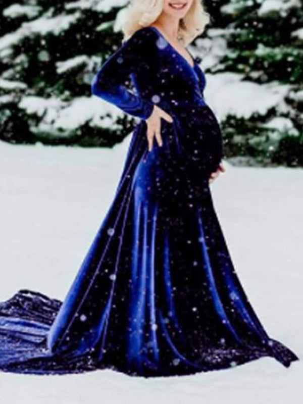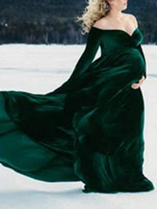 fotobeyou Off Shoulder Pleuche Mermaid Photoshoot Baby Shower Maternity Maxi Dress