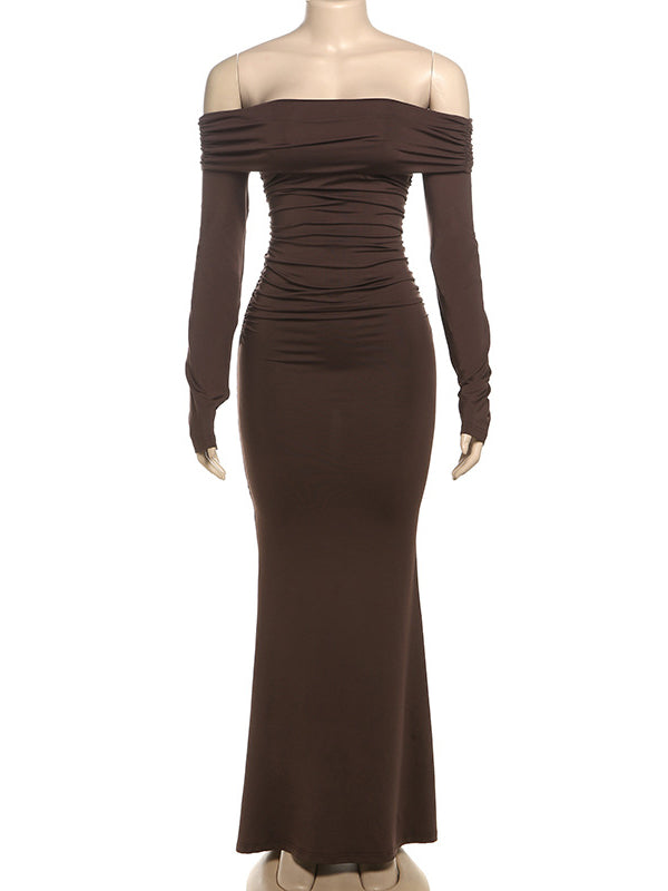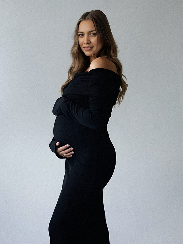 fotobeyou Off Shoulder Ruched Flare Sleeve Mermaid Bodycon Fashion Photoshoot Baby Shower Maternity Maxi Dress